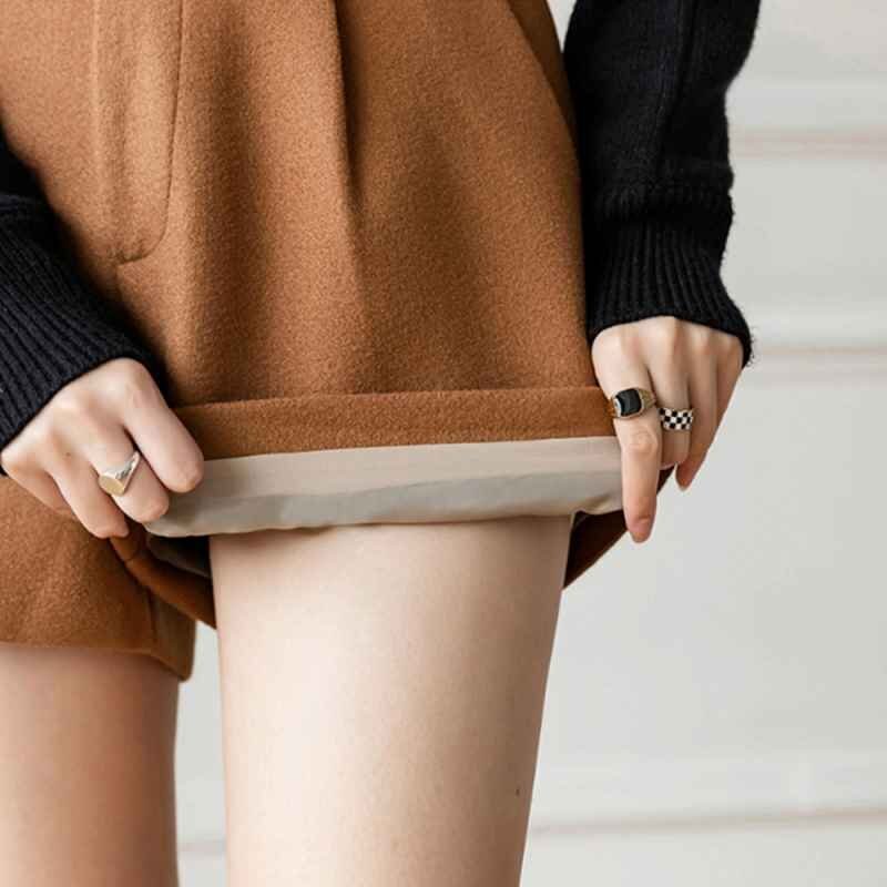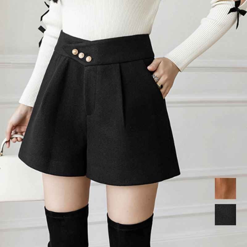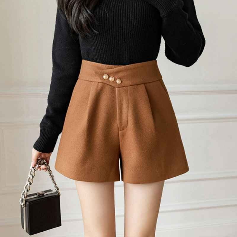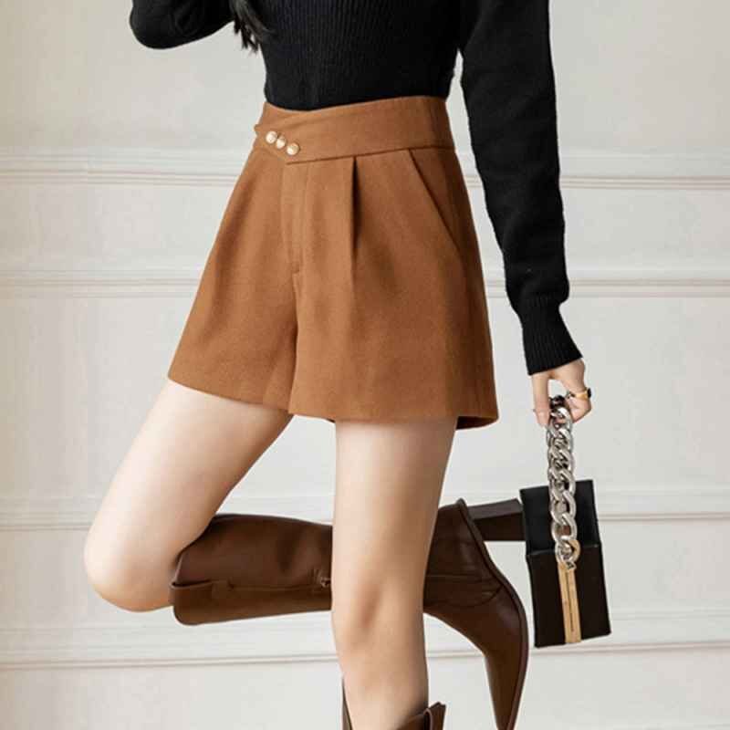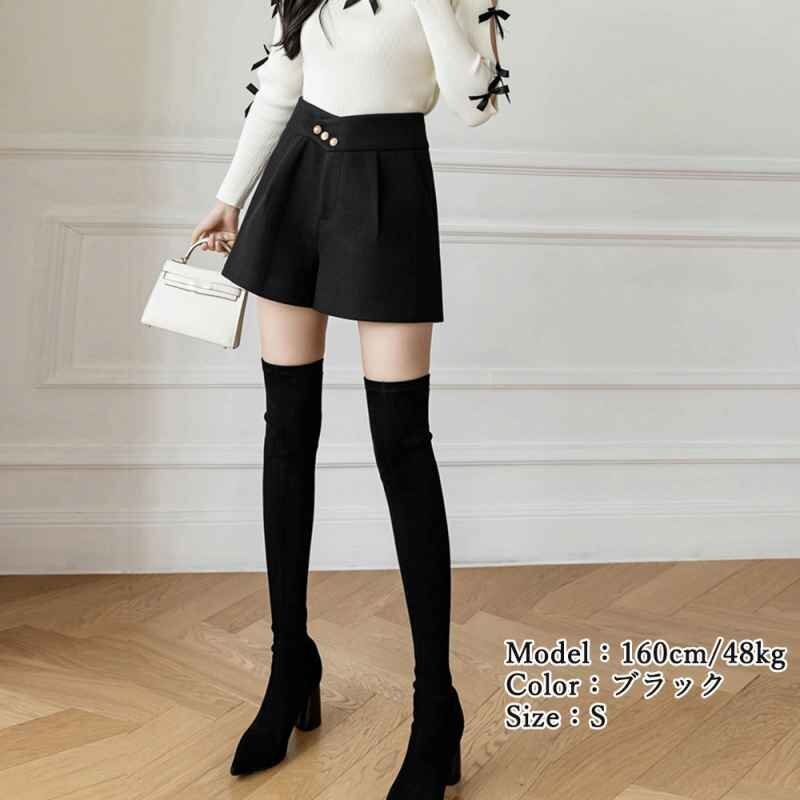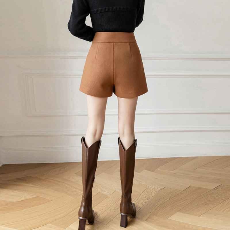 ハイウエストでミニマルなデザインがウエスト周りをすっきりと見せてくれるウール風ショートパンツ
