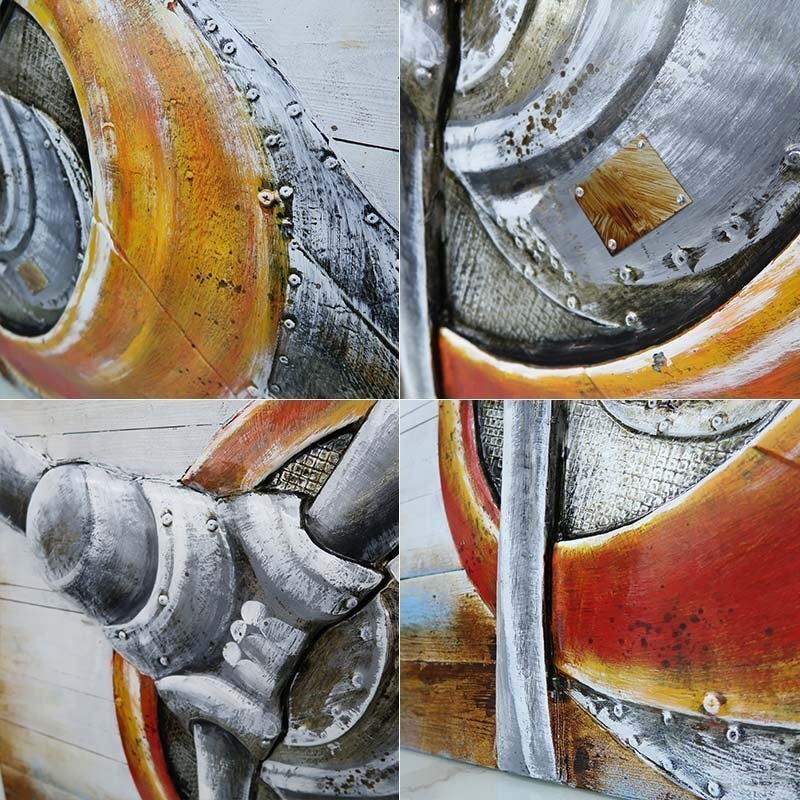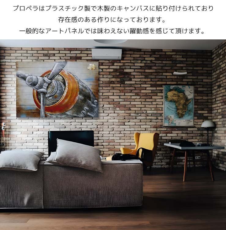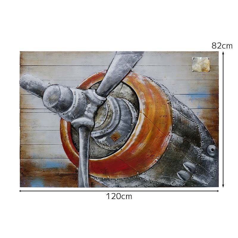 ![]() 木製のキャンバスに油絵と立体絵で装飾した、お洒落なアンティークテイストのアートパネルです。 プロペラはプラスチック製で木製のキャンバスに貼り付けられており存在感のある作りになっております。 一般的なアートパネルでは味わえない躍動感を感じて頂けます。 パネルに描かれた絵は油絵具を使用した油絵です。 油絵のアンティークな雰囲気がおしゃれです。 空間をオシャレに彩ります。自宅、カフェBARにも、 おすすめのインパクトあるデザインの木製アートパネルです。 フレーム部をひっかけるだけで画鋲などでも簡単に設置が可能。 商品詳細 サイズ(約):幅120cm*縦82cm*奥行5cm 重さ(約):5.3kg 素材 ・杉材(本体) ・油絵具 ・プラスチック(立体部分) ・プレート(アルミ) |