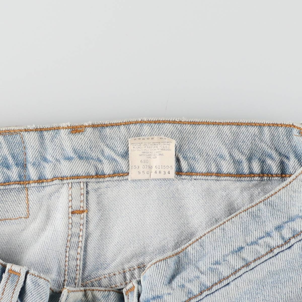| 着用感: メンズw31 表記サイズ: W32 L34 ウエスト: 79cm 股上: 29cm 股下: 85cm もも周り: 65cm 裾周り: 37cm ![]() | ![]() ランク:C USEDデニムですので使用感、擦れ、色落ちなどございますが、まだまだご愛用していただけます。 古着という事をご理解の上ご注文よろしくお願いします。 【状態追記】 ●全体的に汚れ ●前、両裾に擦れ ●後、中央ヒップ・両裾に擦れ ●内側、前両ポケット口・両裾に汚れ |