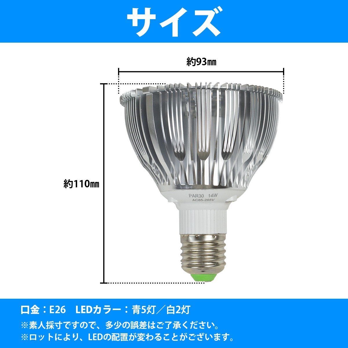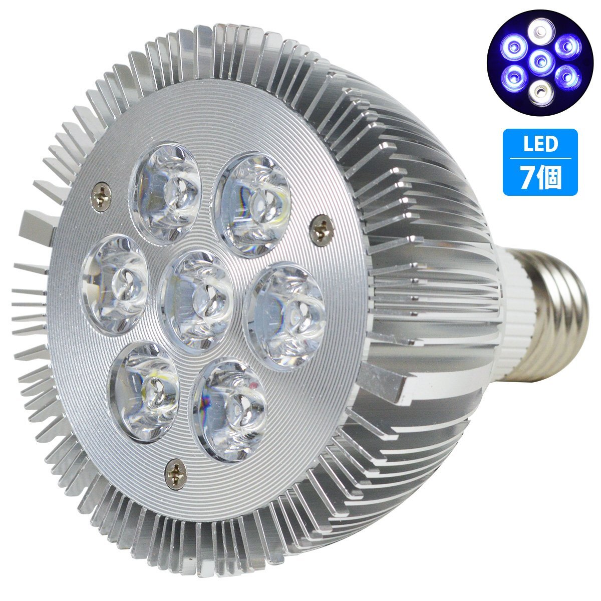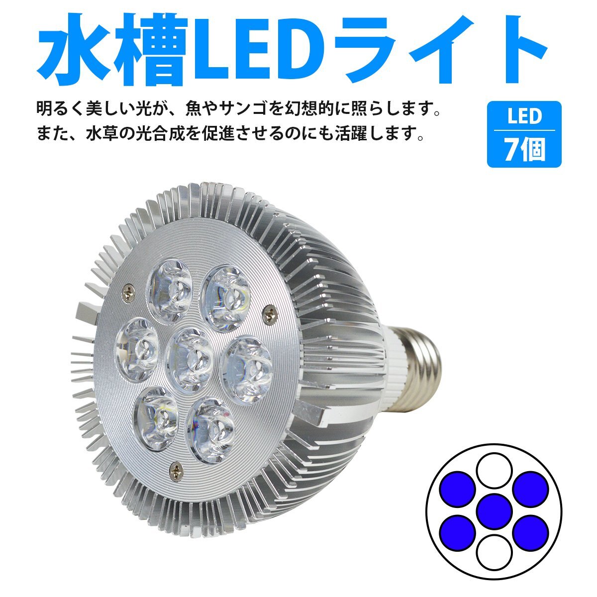 水槽 用 スポット ライト 電球 7LED 14W 青5/白2灯 口金 E26 アクアリウム 電球 照明 植物育成 水草 サンゴ 熱帯魚 観賞魚
