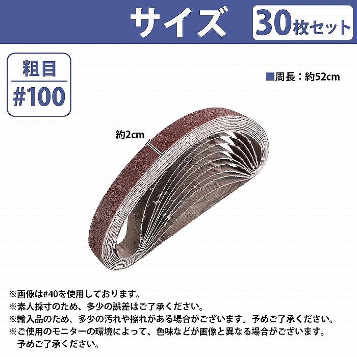 【送料250円】『♯100 20mm×520mm』30枚セット ベルト ペーパー 電動 ディスク サンダー 交換用 エンドレス ペーパー 金属 研磨 幅 2cm
