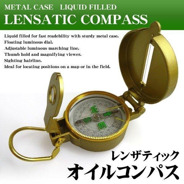 コンパス 方位磁石 オイル式 火起しできる 金属製ケース付き 方角 位置確認 アウトドア 登山 キャンプ 送料無料 3M◇ オイル式コンパス