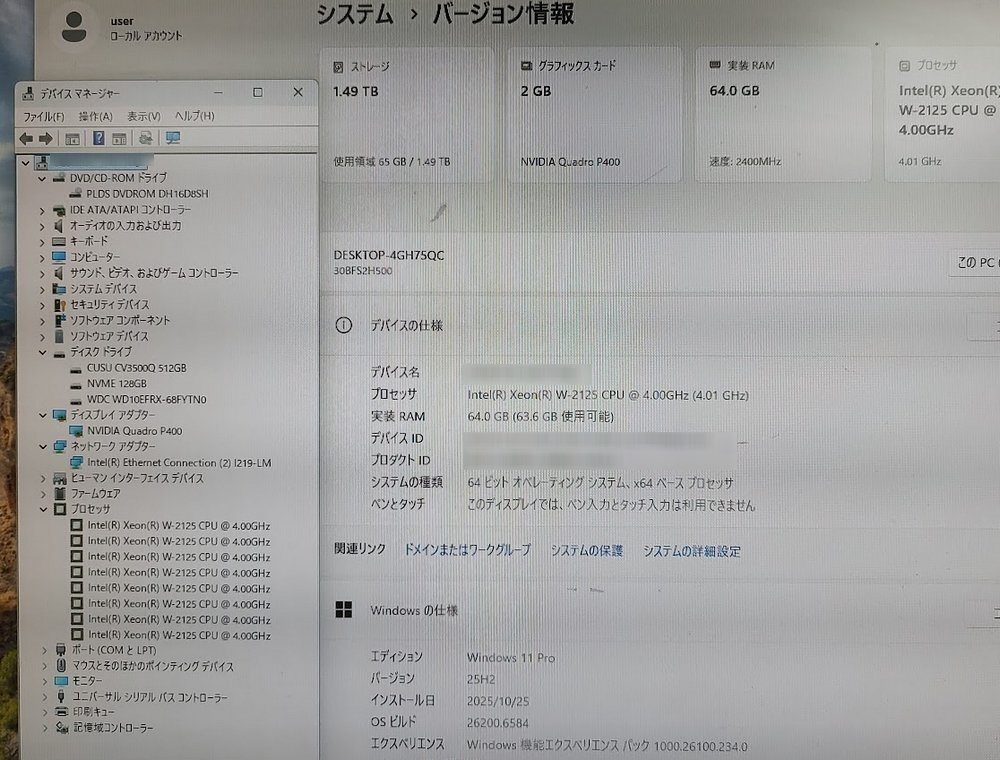 | メーカー 種類 | Lenovo タワー型ワークステーション |
