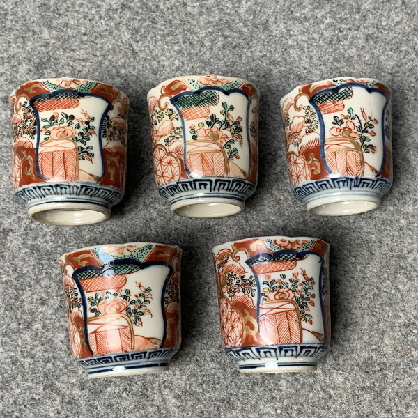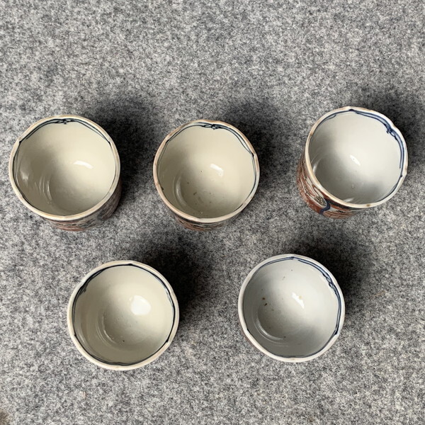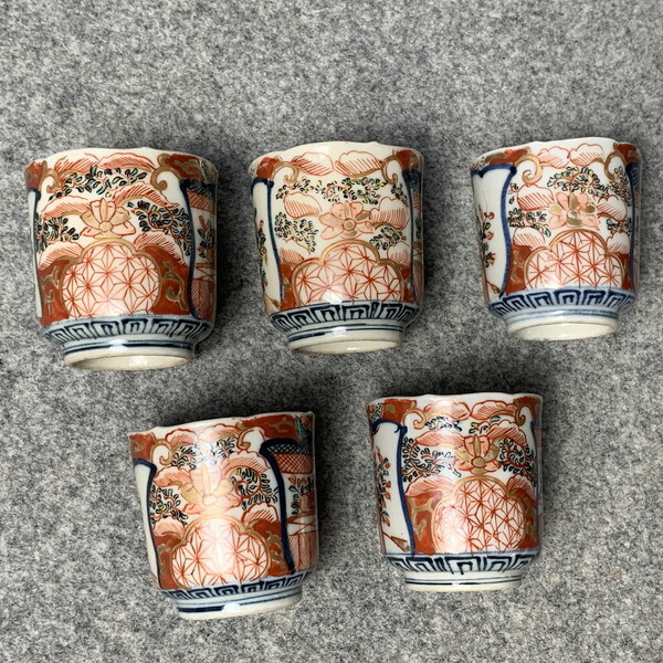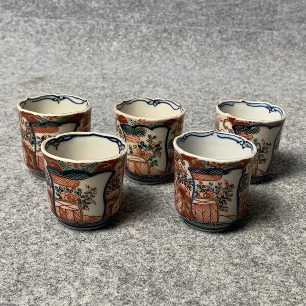 古伊万里色絵輪花縁のぞき猪口5個です。 商品画像が実際の商品そのものですので、ご入札前にしっかりとご確認いただきますようお願いいたします。 |