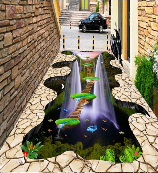 C579 巨大 3D フロアマット 1.45m*3m* 危険! 落とし穴 トリックアート 吊り橋 防音 断熱 滑り止めシート 床 壁 天井 はがせるシール