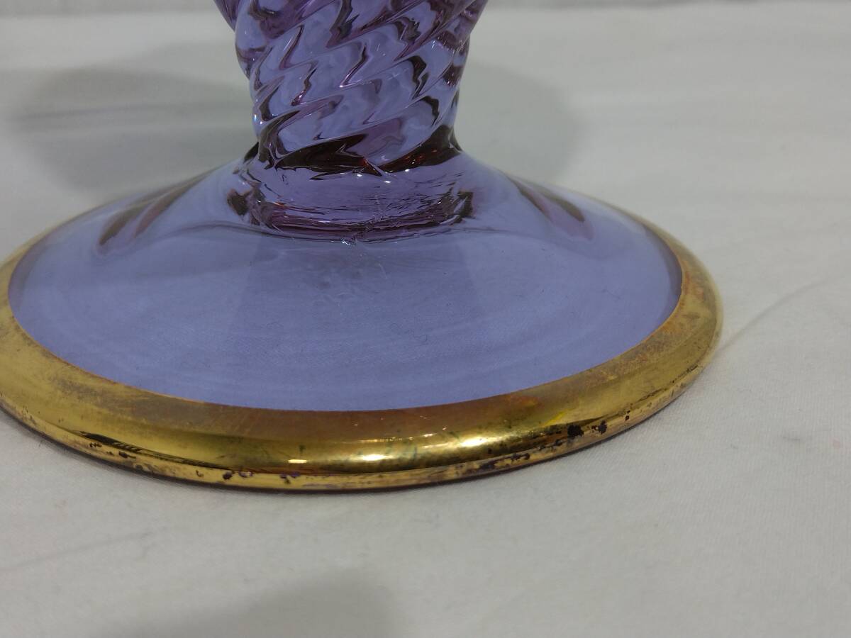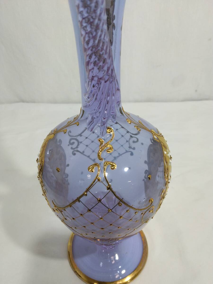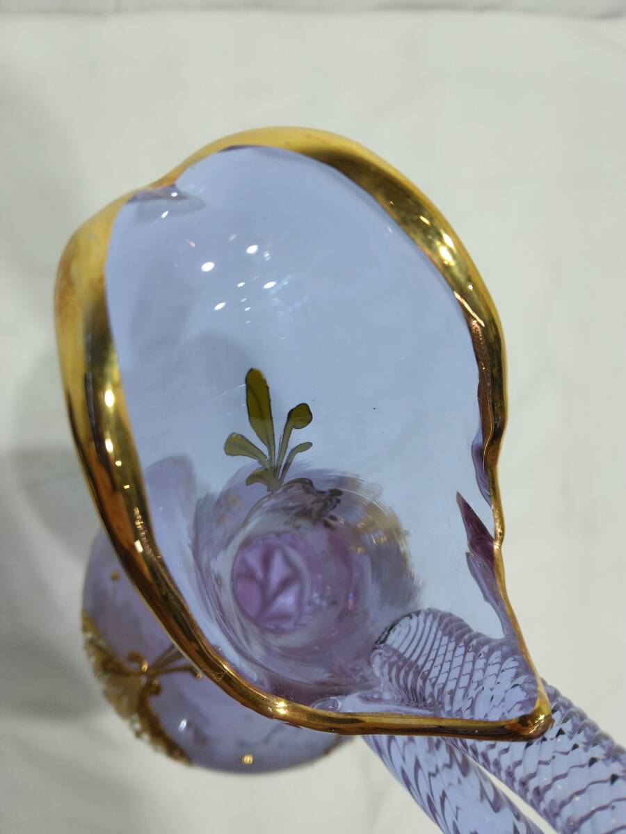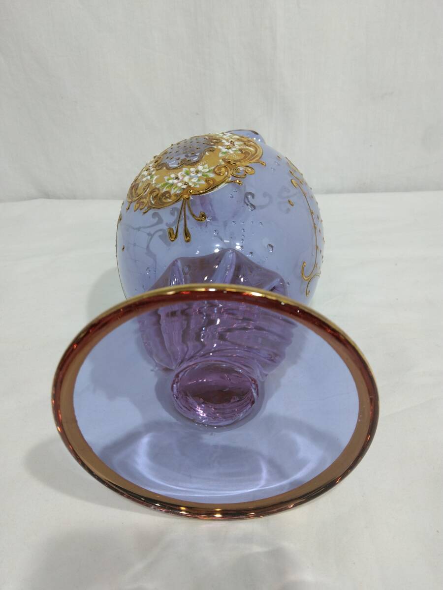 □1円 ベネチアン グラス 水差し 蓋つき 水色 金彩 花柄入 イタリアガラス工芸品 USED品 アンティーク 割れ欠けヒビなし 金彩のがれ有