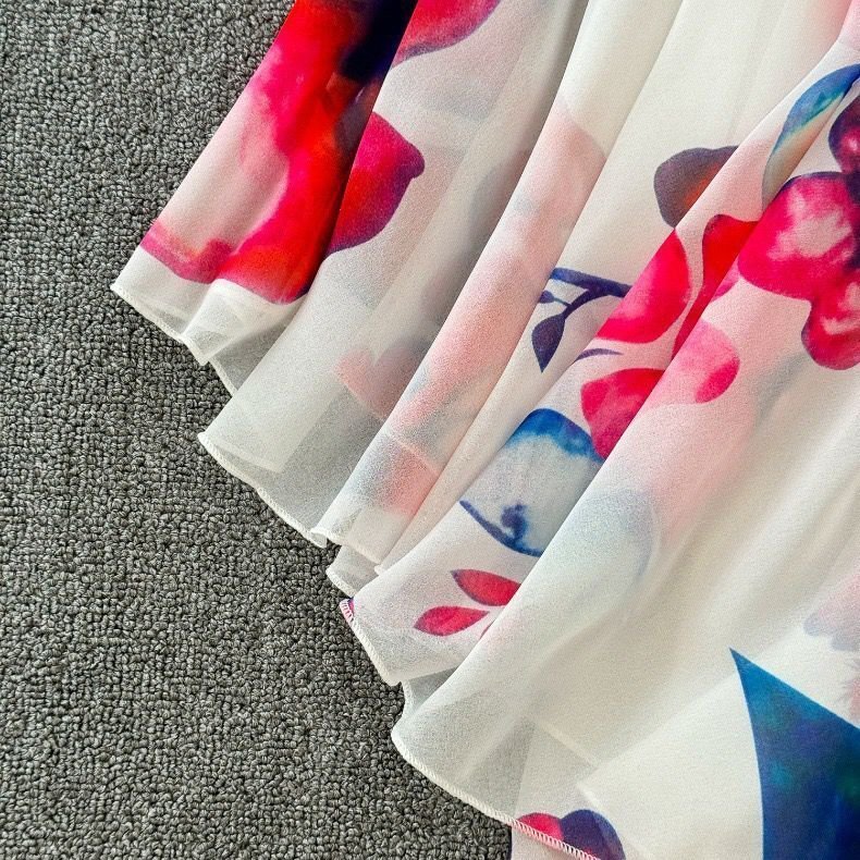 高級ヨーロッパ製※定価5万◆ブルガリア発※RISELIN ワンピース シフォン 薄手 裏地付き 花柄 体型カバー 着痩せ 上品 レディース 夏 L/48