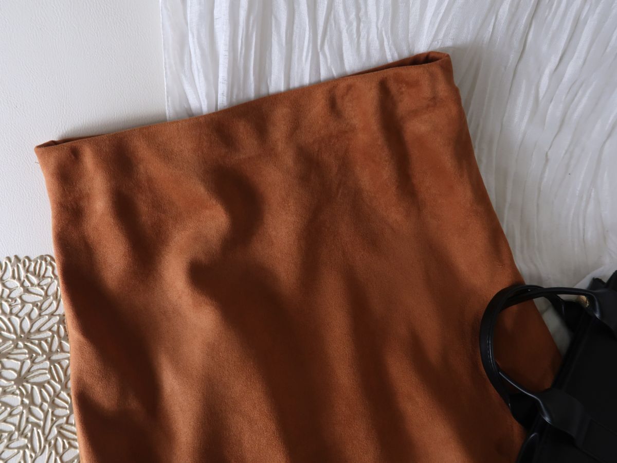 チープに見えない肌触りの良いフェイクスエードは、軽くて柔らかい、着心地の良い生地感です。