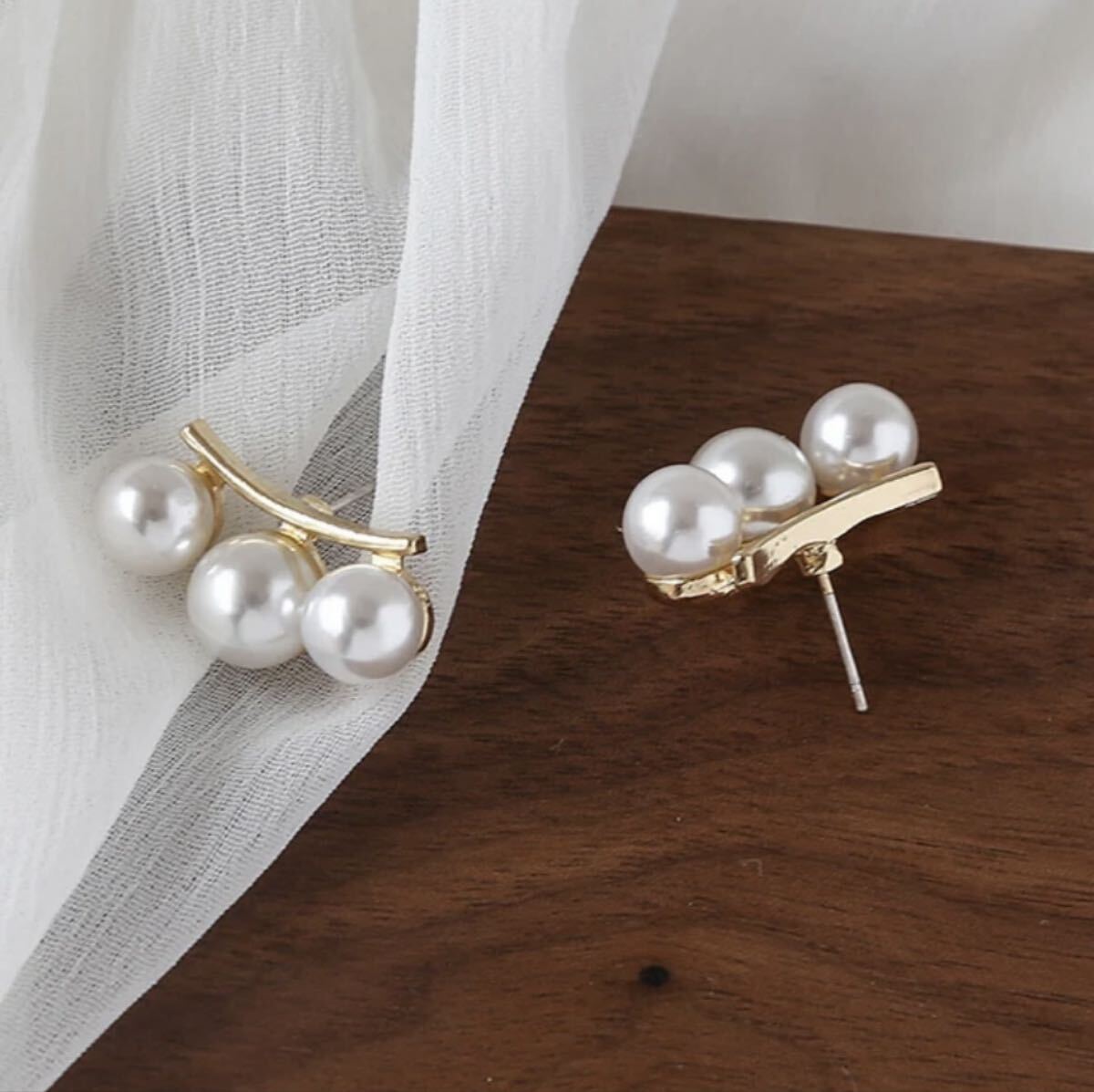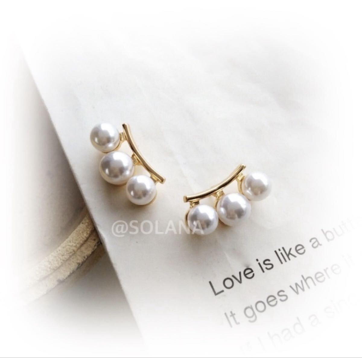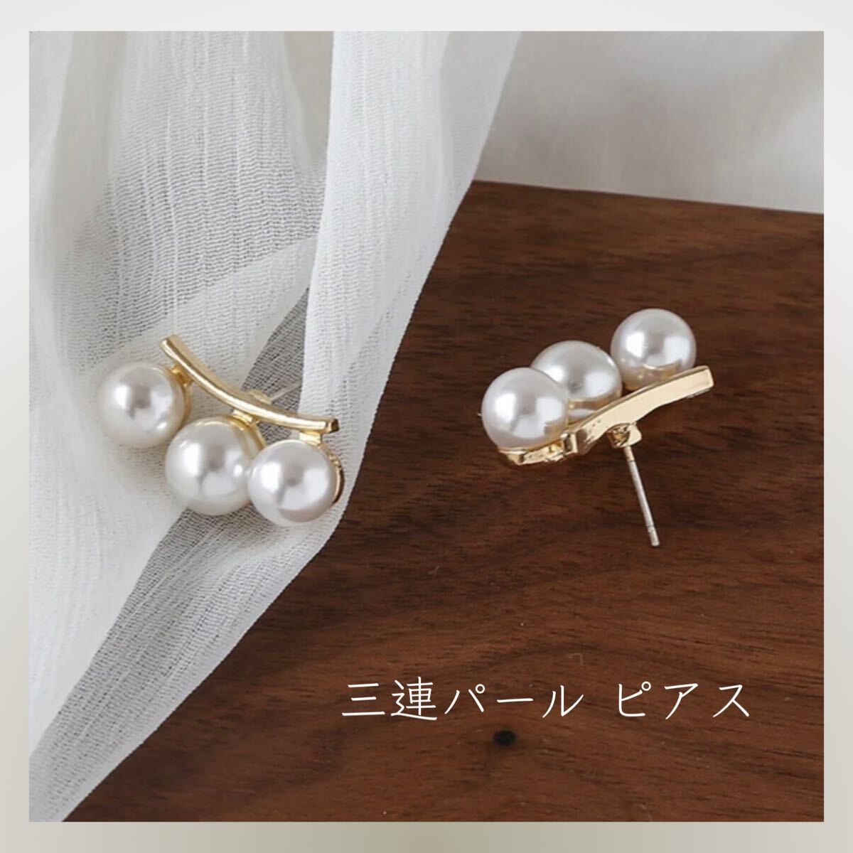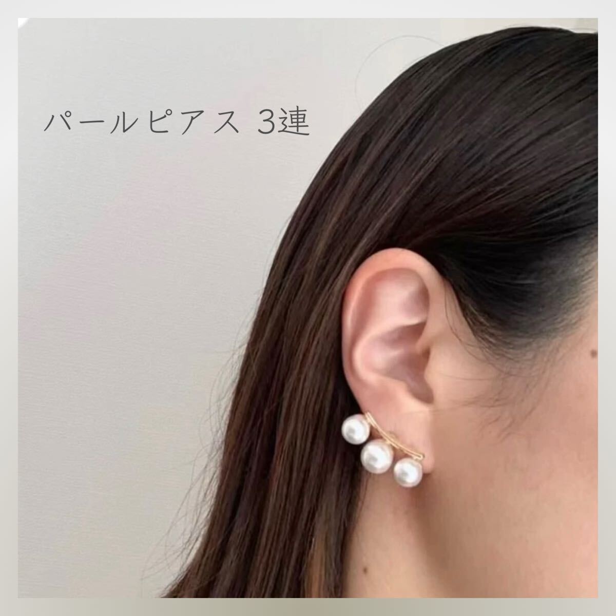2*新品* パールピアス 3連 カーブ ゴールド 華やか