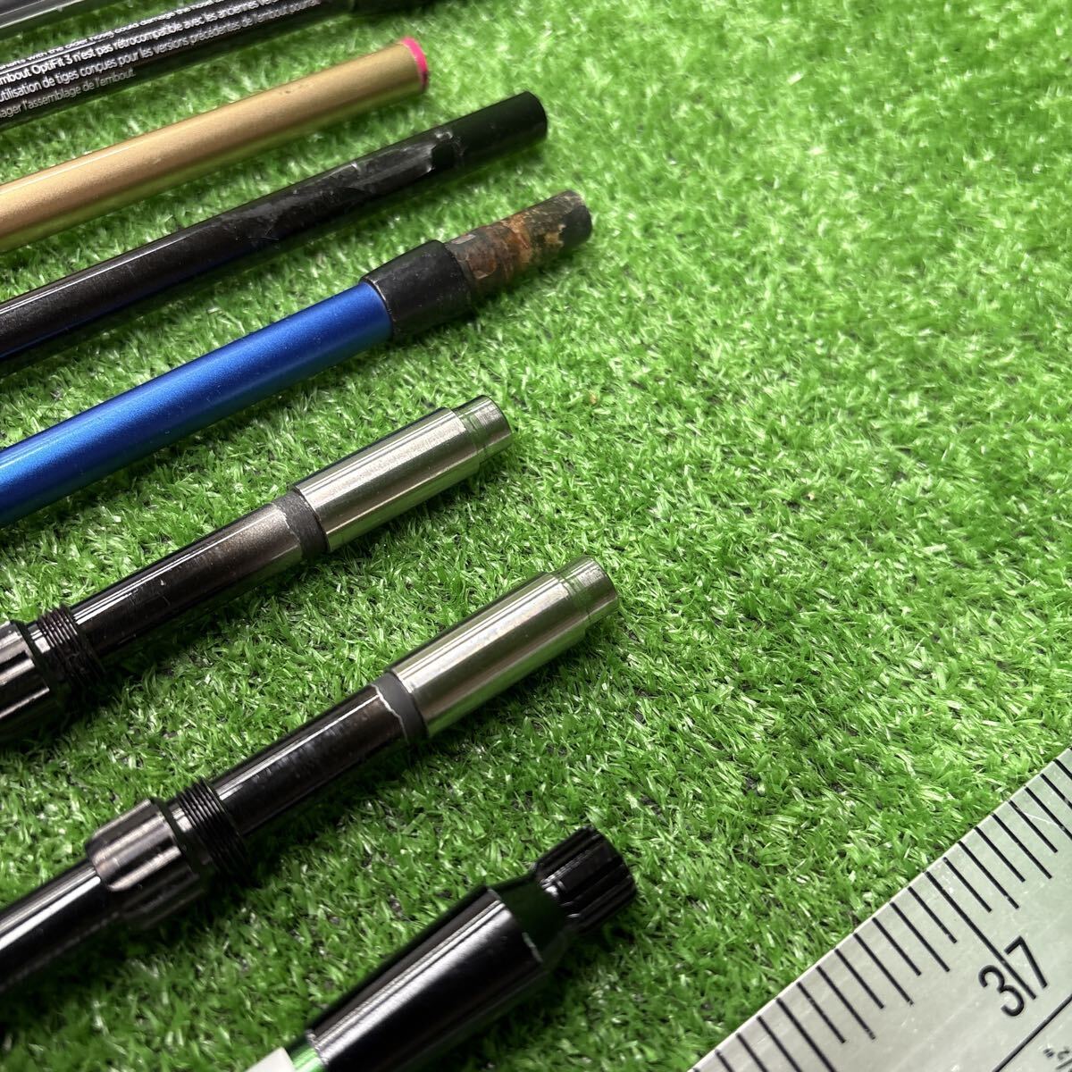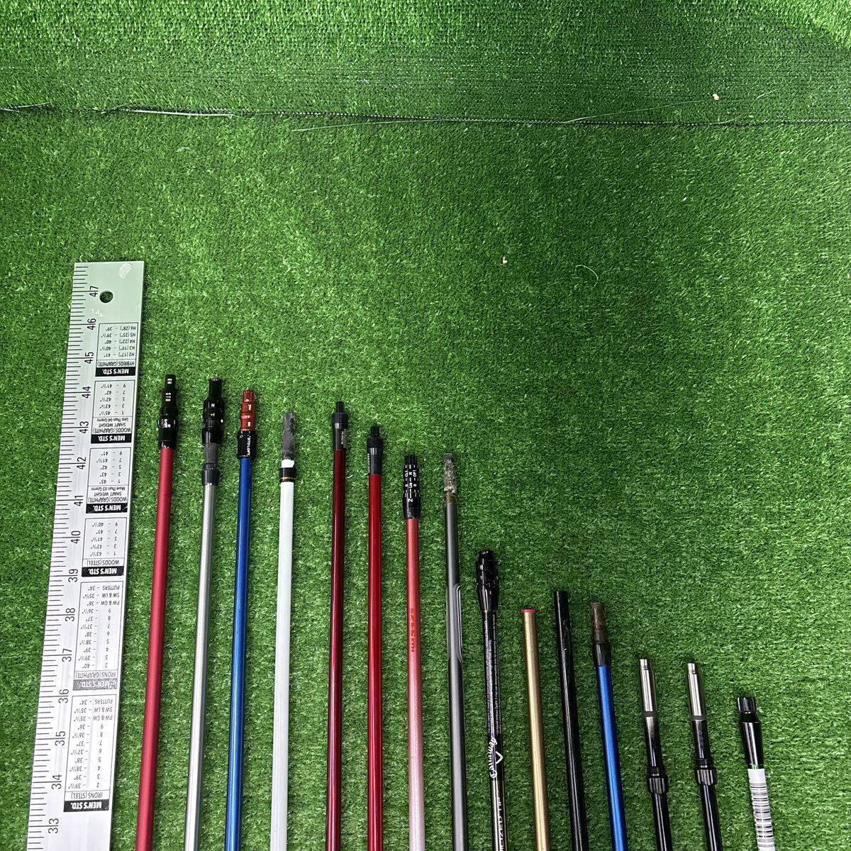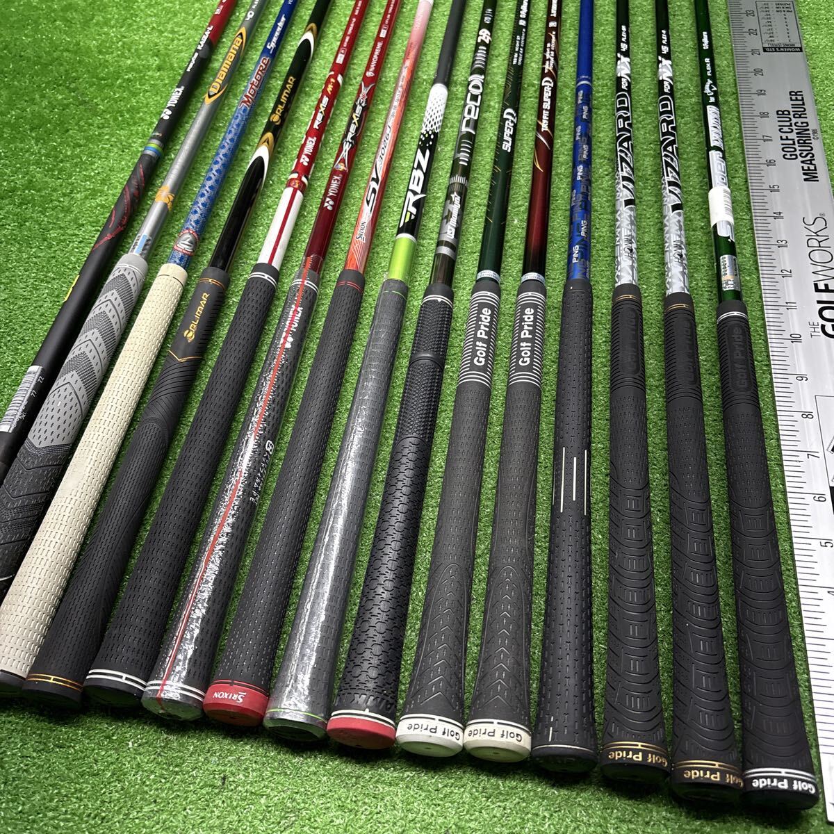 最近は出品が少なくなってしまい申し訳ありません。 メーカーもさまざまで、長さもドライバー用、フェアウェイウッド用なども入ります。インチメジャーを横に付けましたのでご参照下さい。 中には試打用のシャフトも混じります。 尚、フレックスは画像をご参照頂ければ思いますが、どうしても詳しい情報が聞きたい場合にはお問い合わせ下さい。 小さな傷などは画像では判断が出来ない場合があるかもしれませんが割れなどはチェックをしておりますのでよろしくお願いいたします。