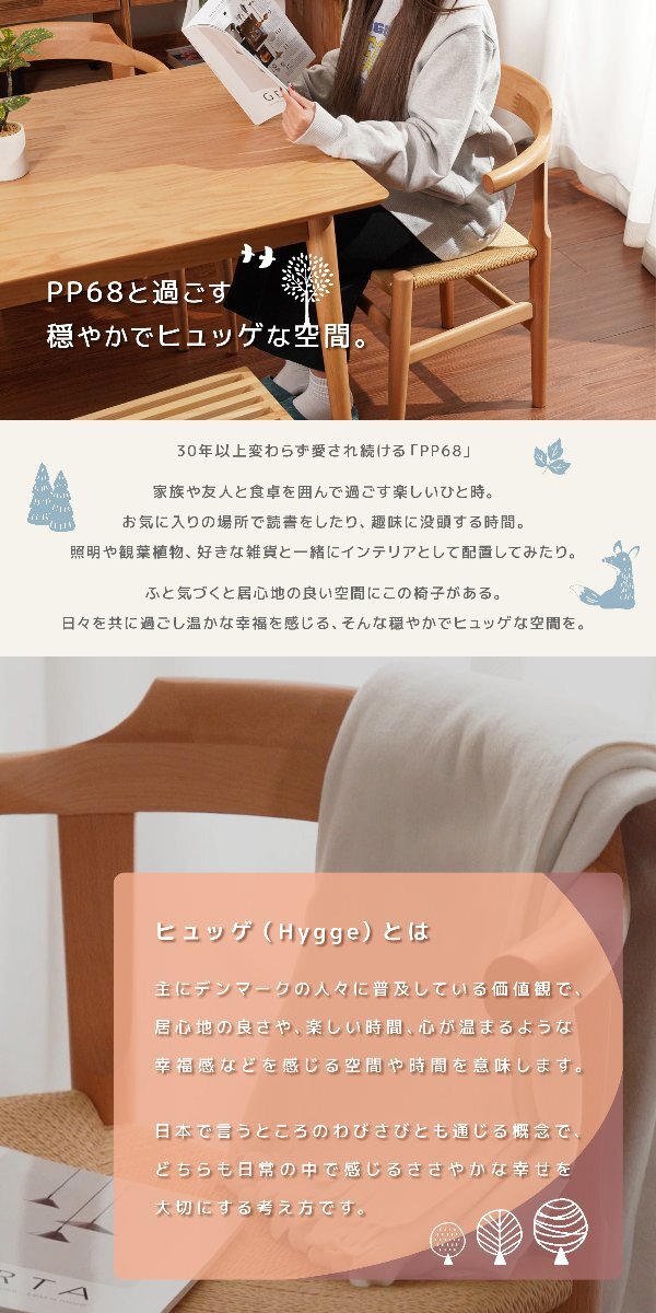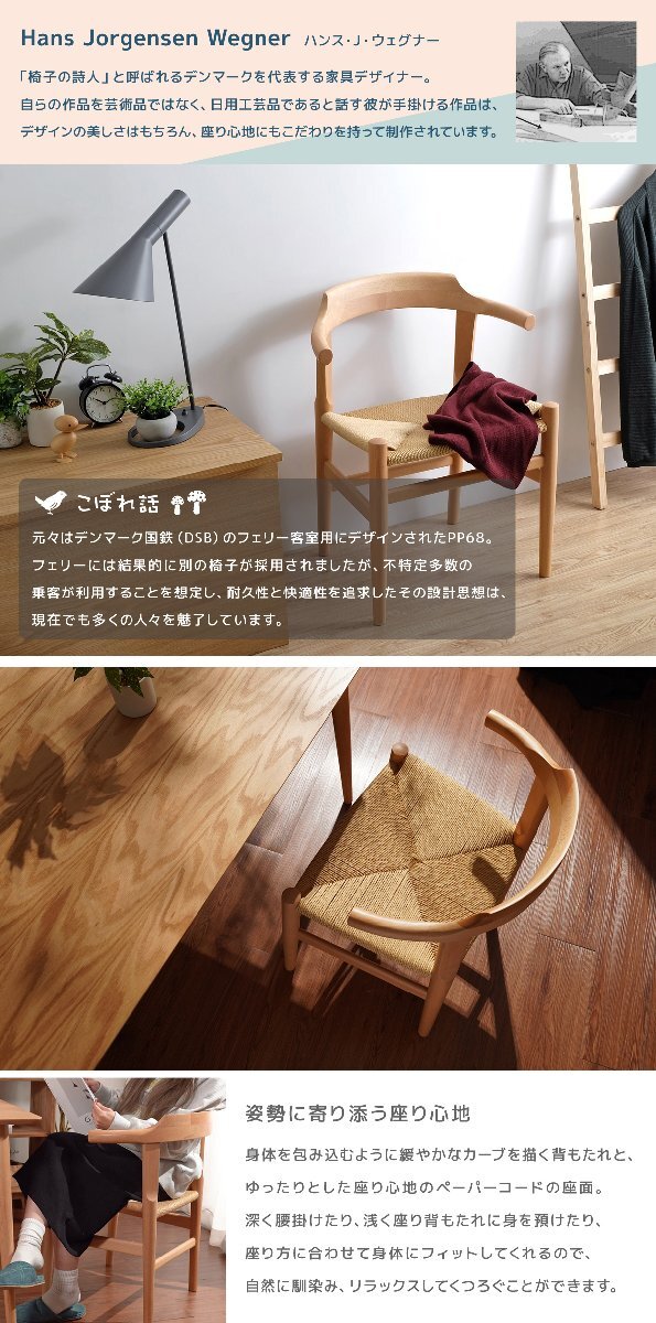 ハンス・J・ウェグナー PP68 アームチェア ナチュラル×ブラウン 北欧椅子 木製 ダイニングチェア インテリア デザイナーズ リプロダクト