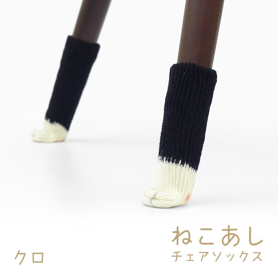 ねこあしチェアソックス クロ 椅子脚クッション イス靴下 インテリア 小物 雑貨 モダン かわいい ネコ 猫 防音 防キズ 内側滑り止め付き