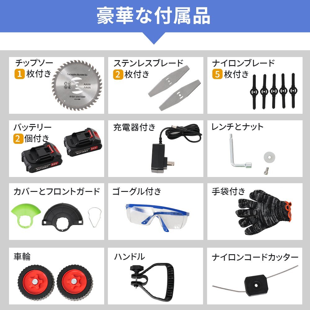 • 【高性能バッテリー】バッテリーが2個付き大容量1300mA/h高出力24V 稼働時間合計60分※無負荷時の稼働時間です。具体的な作業状況により稼働可能な時間が違います。
