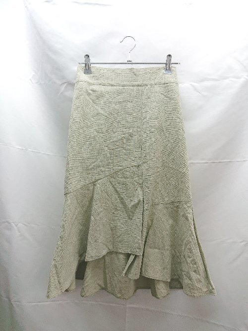 ◇ DHOLIC ディーホリック 綺麗め アシンメトリー 膝丈 フレア スカート サイズ表記なし M相当 グリーン レディース E
