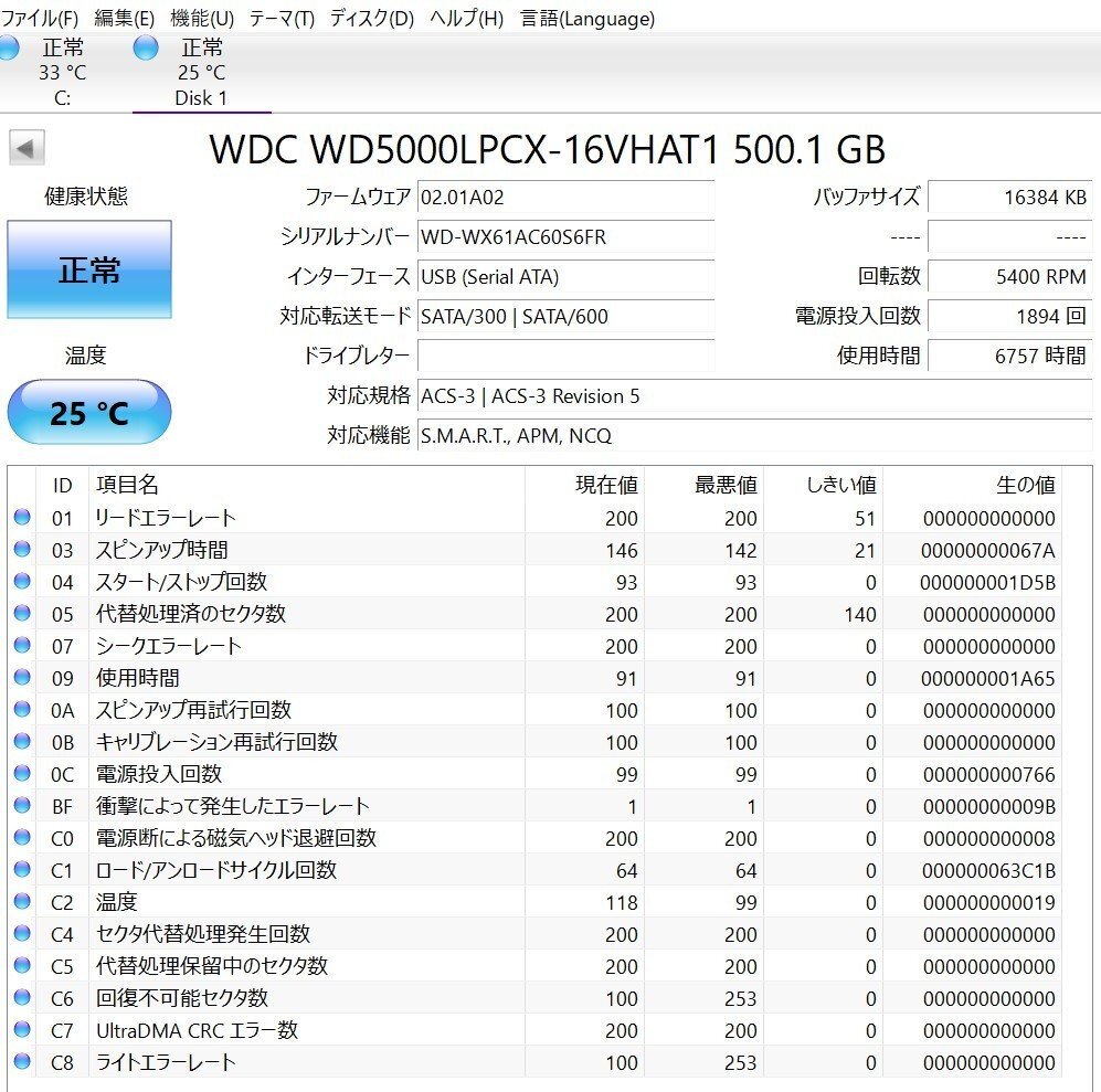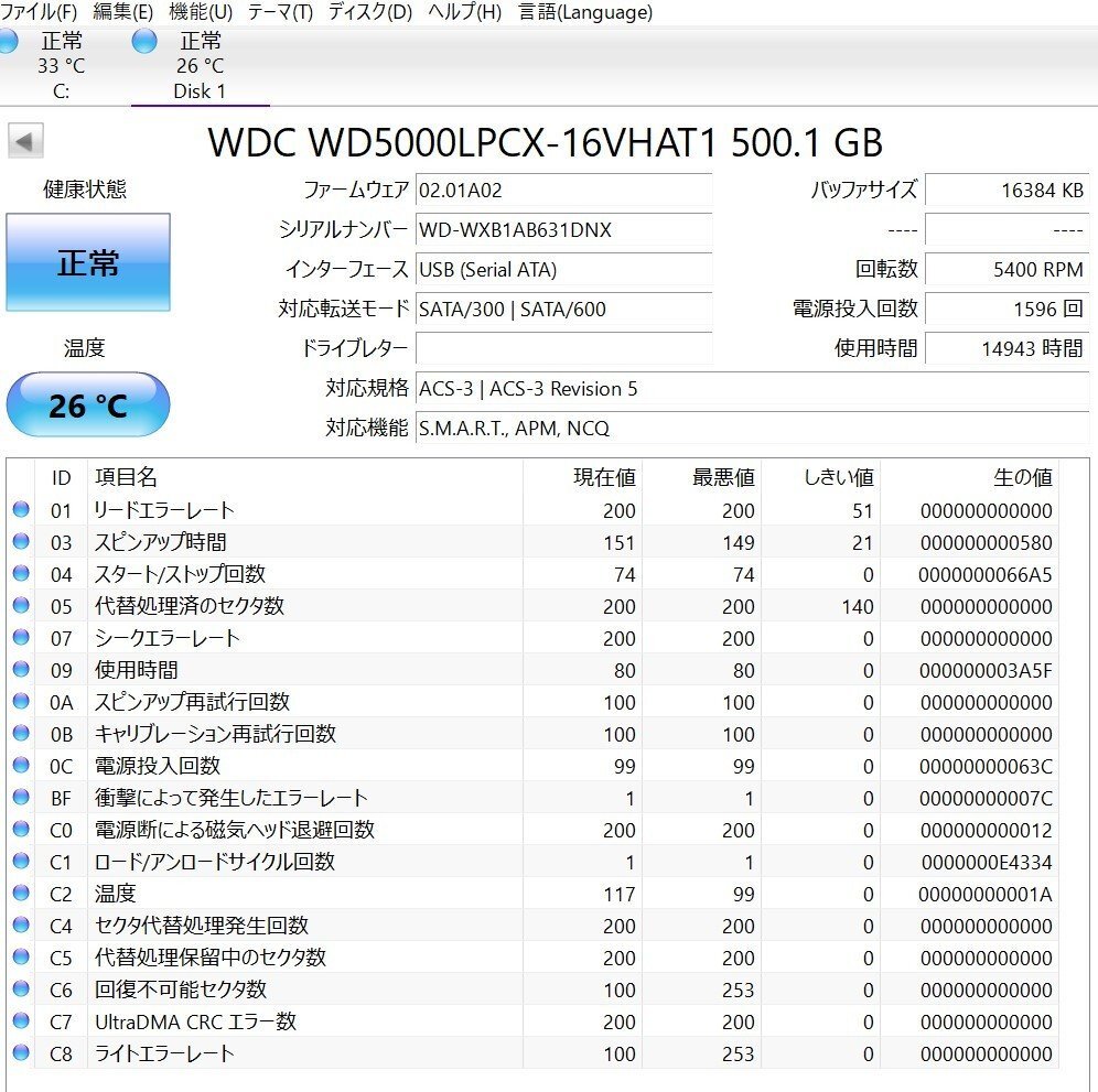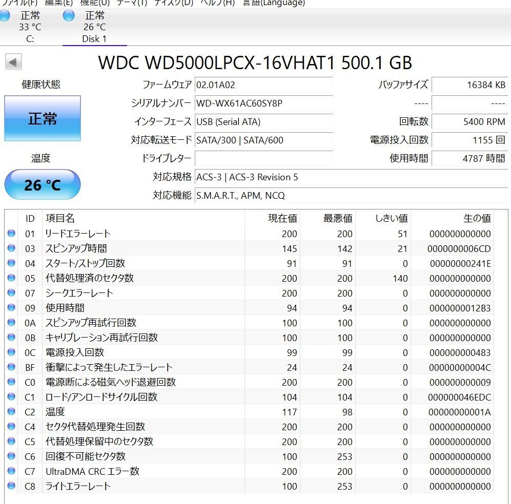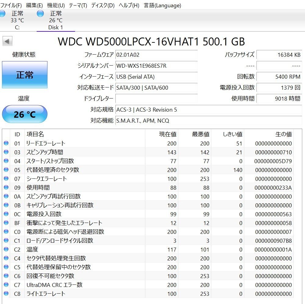 KN3787 【中古品】 WesternDigital WD5000LPCX 500GB 4個セット