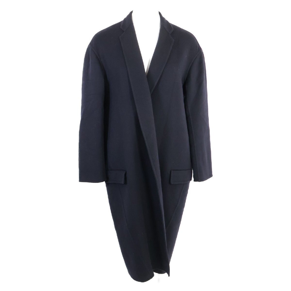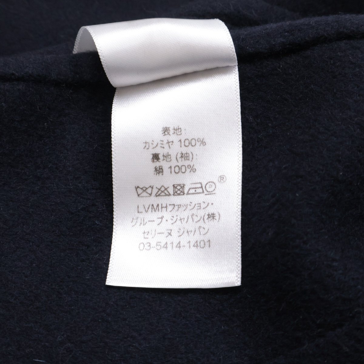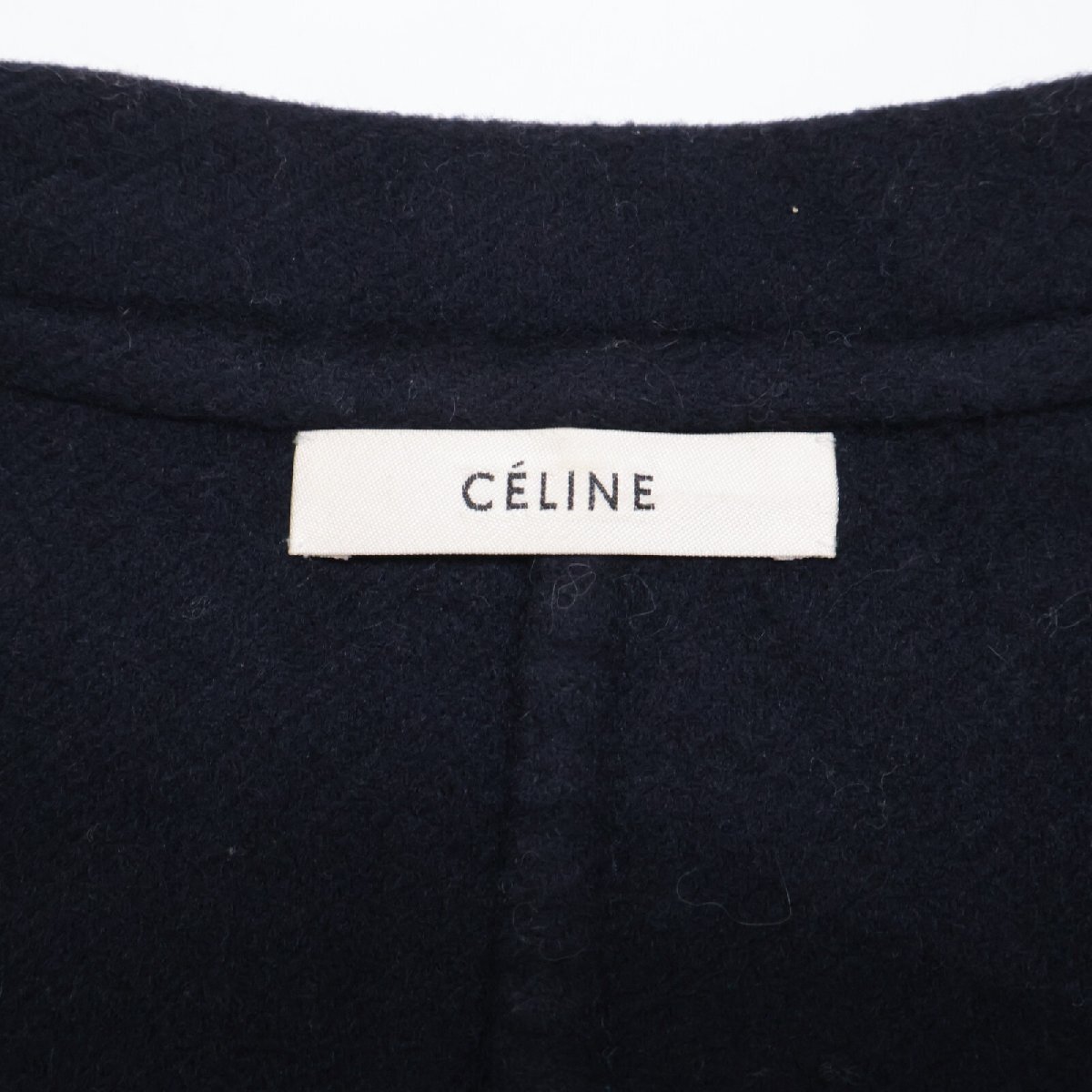 国内正規/ CELINE セリーヌ 8H13/6700 フィービー期 カシミヤ100% エッグクロンビー コート 34 ネイビー レディース