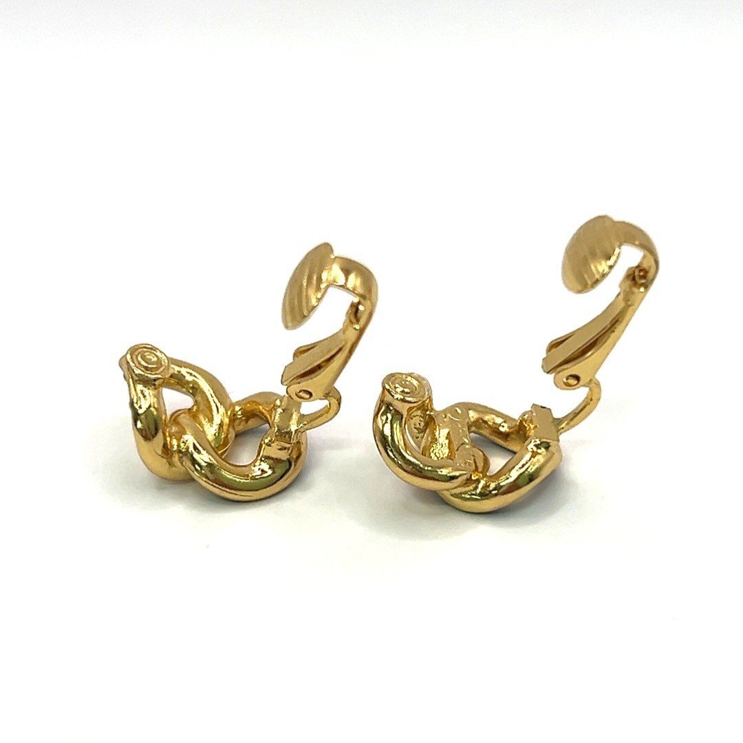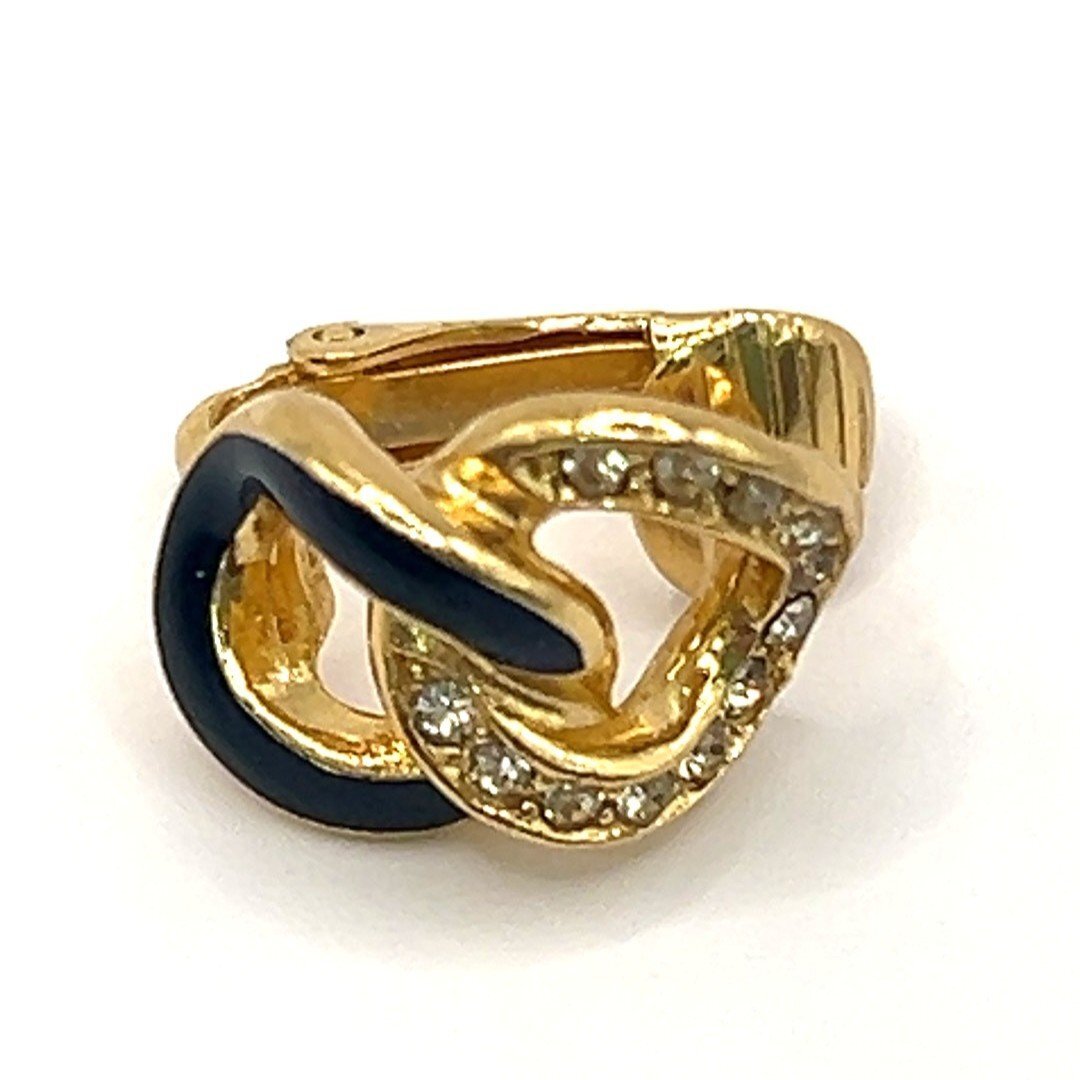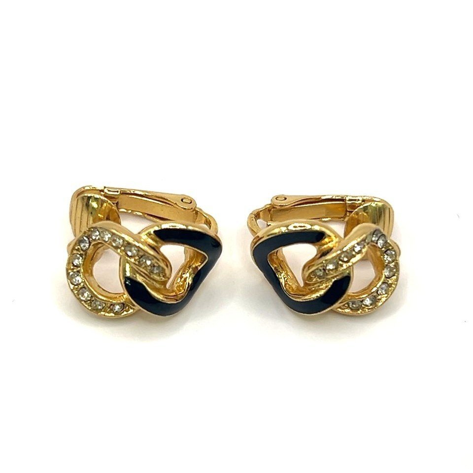 美品 クリスチャン ディオール Christan Dior チェンモチーフ イヤリング ラインストーン ゴールド ブラック レディース小物