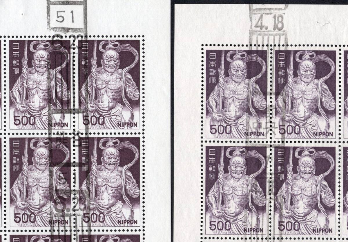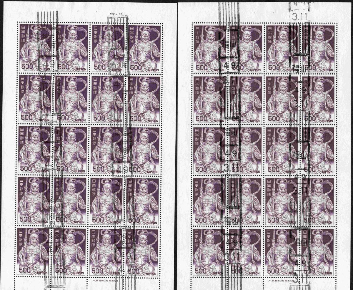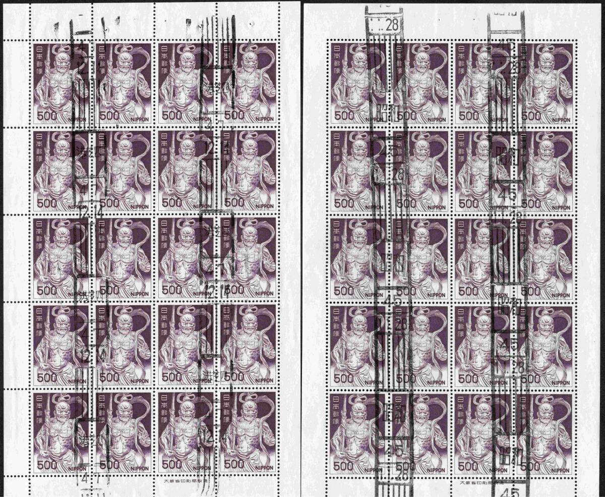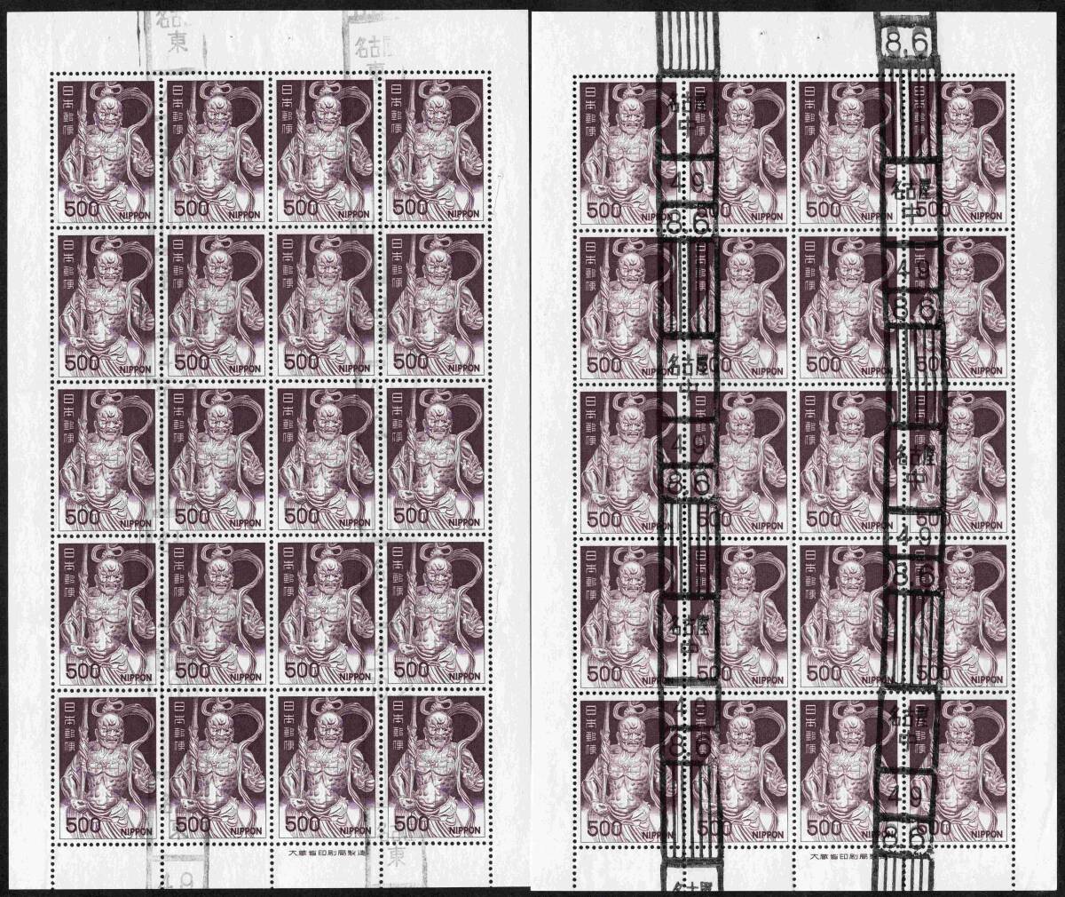 像の一点、500円金剛力士 縦2条ロ消し 10局、10シート セット(2)です。