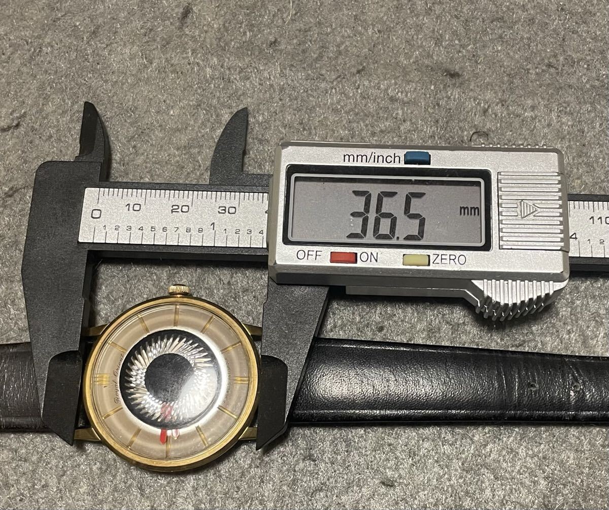 ケースは金色の36ミリ、裏蓋はステンレス、ベルト幅19ミリ。