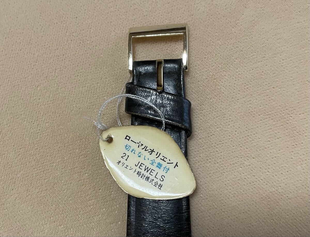 時計店から出てきたデッドストックで、当時のベルト、尾錠、タグが付いています。