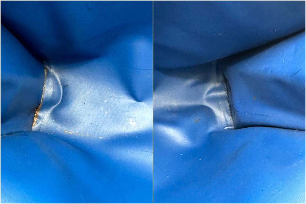 左右の底の角部分に生地の剥がれが見受けられます(画像9枚目)。状態の詳細は画像にてご確認ください。