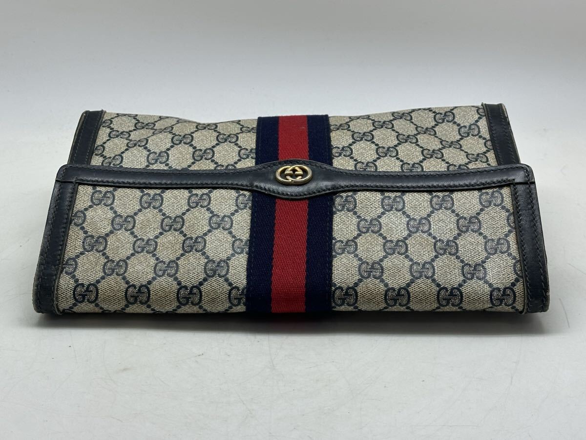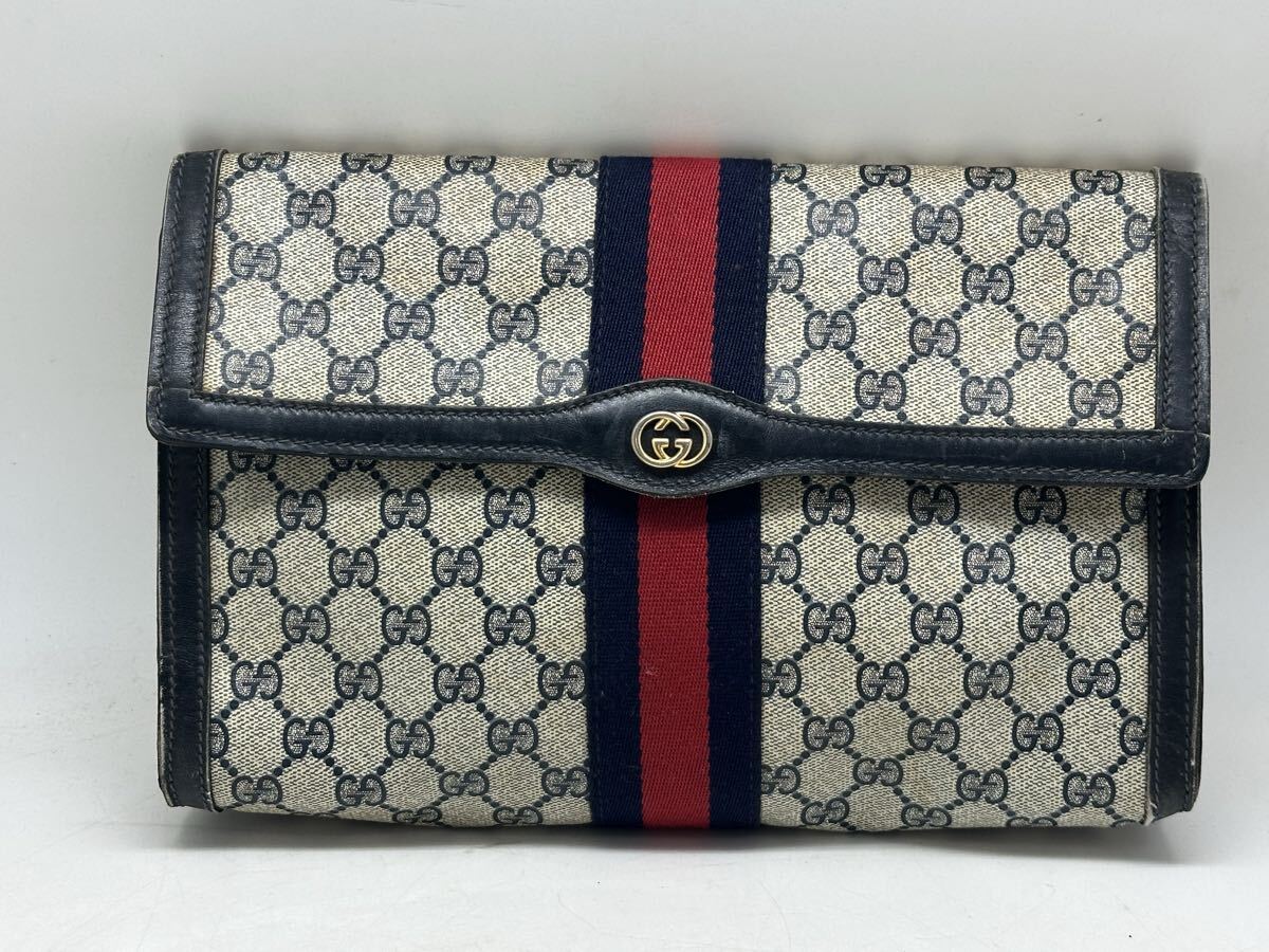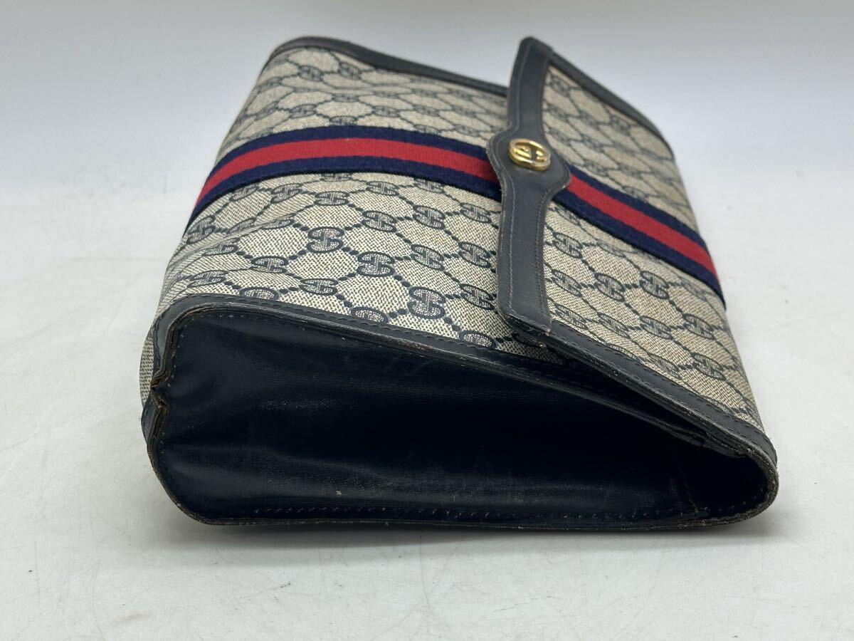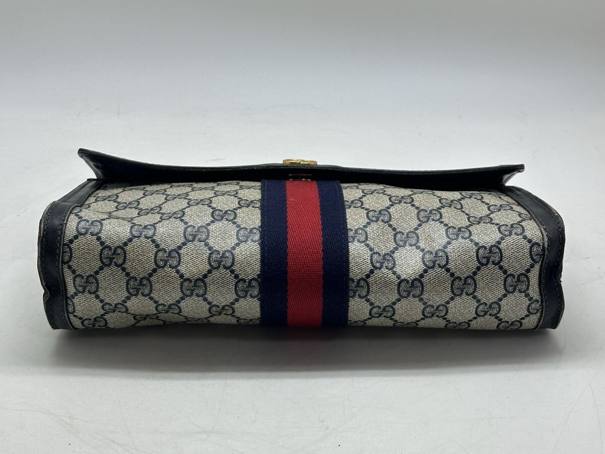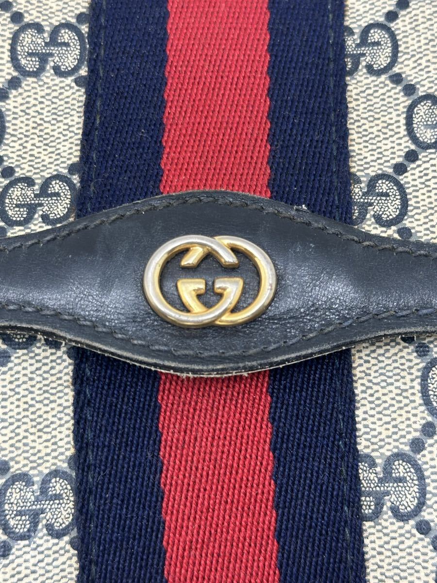 GG柄の部分に汚れ、底角にスレ等が見受けられます。状態の詳細は画像にてご確認ください。