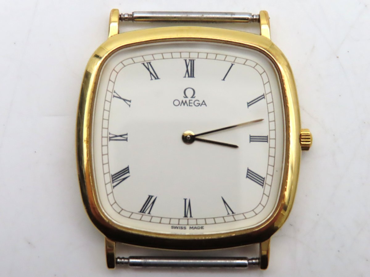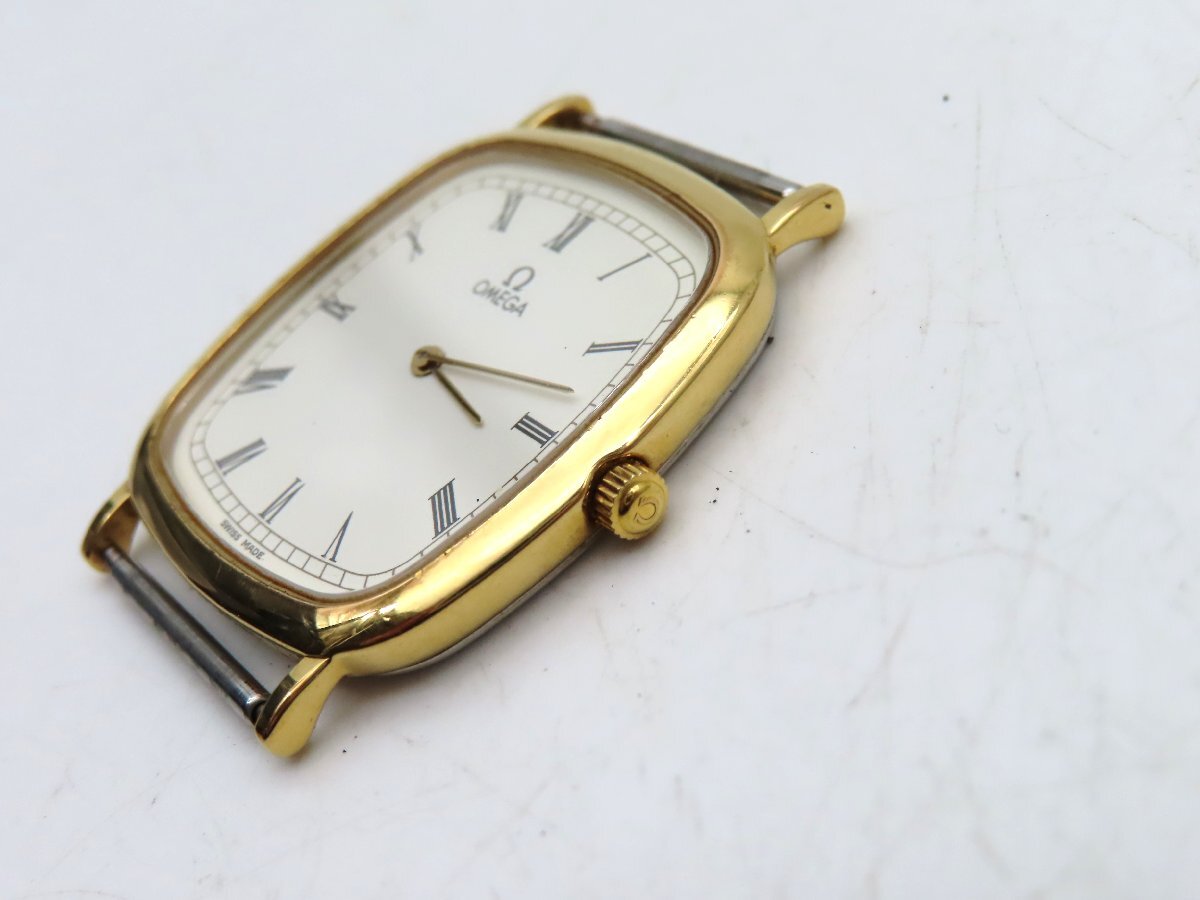 1円 オメガ デビル GP/SS ホワイト文字盤 ボーイズ 稼働 QZ 純正尾錠 30051 NA