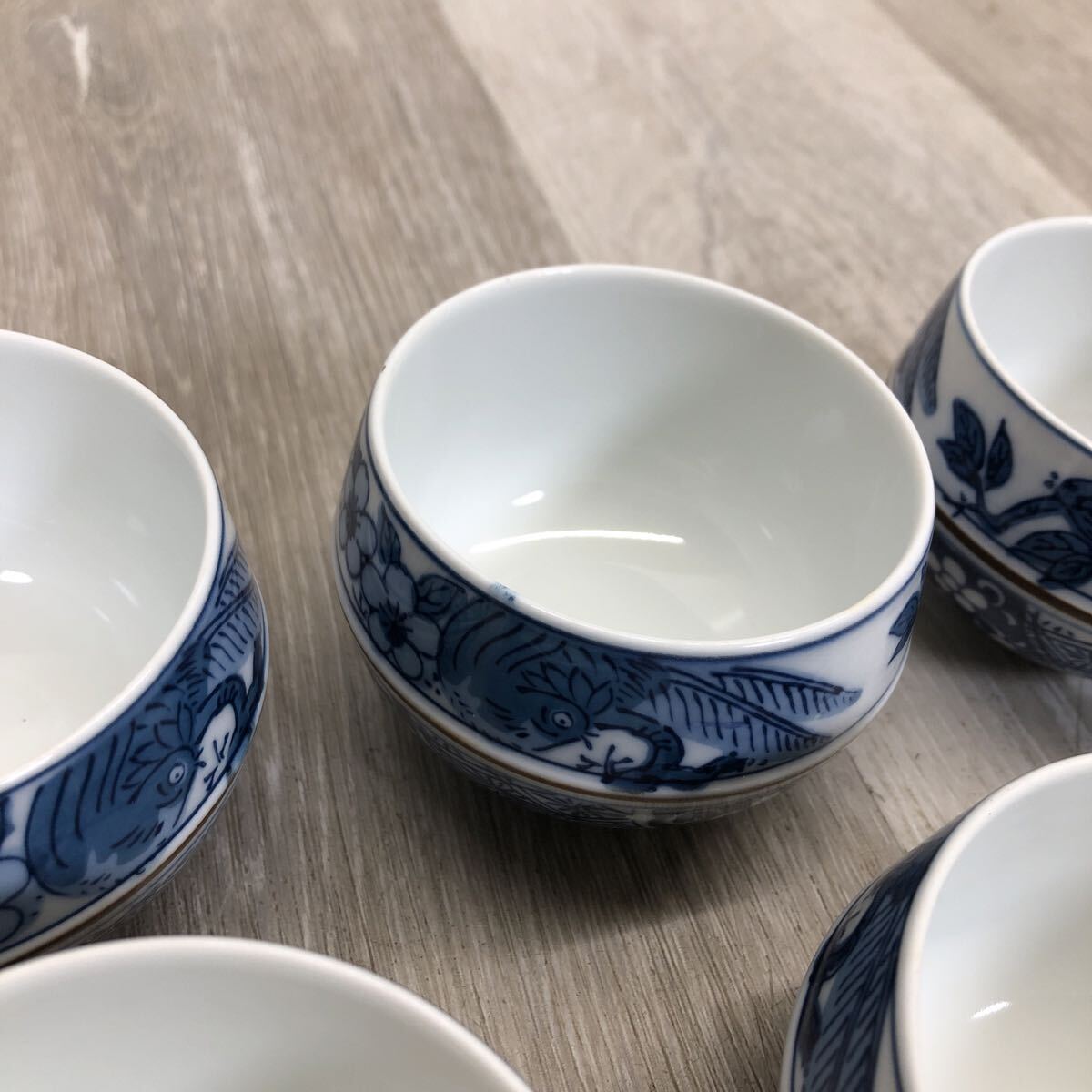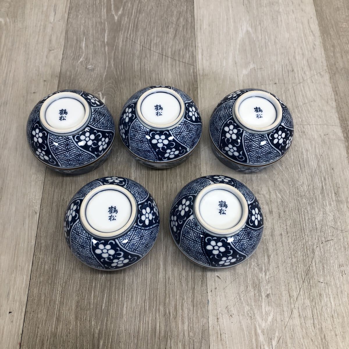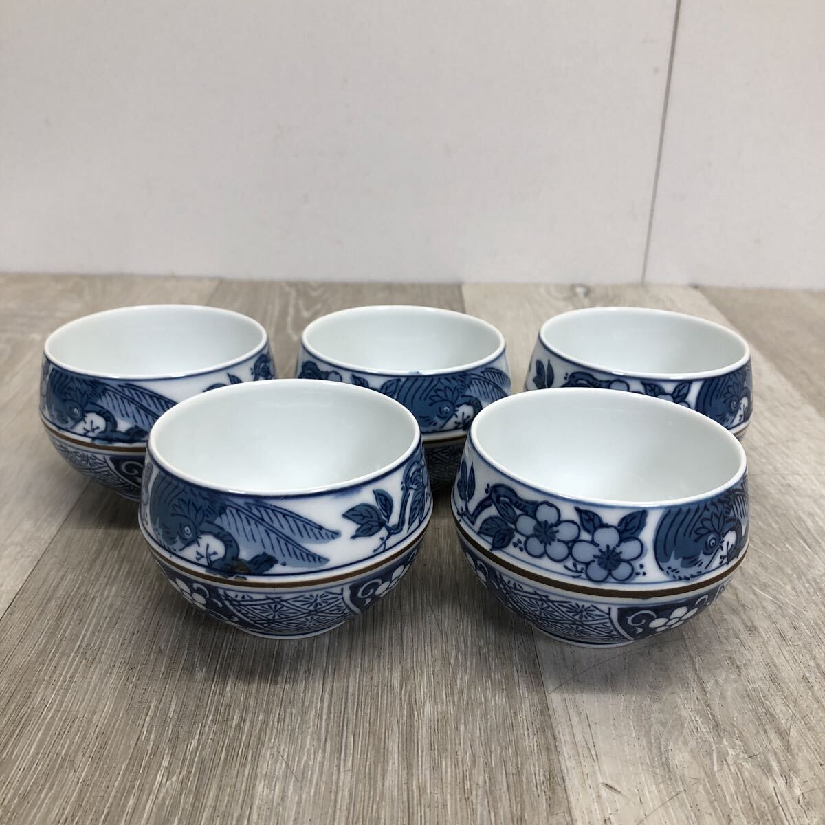 ★1011 香蘭社 有田焼 湯呑 5客 茶道具 セット 鶴松 花柄 茶器 現状品