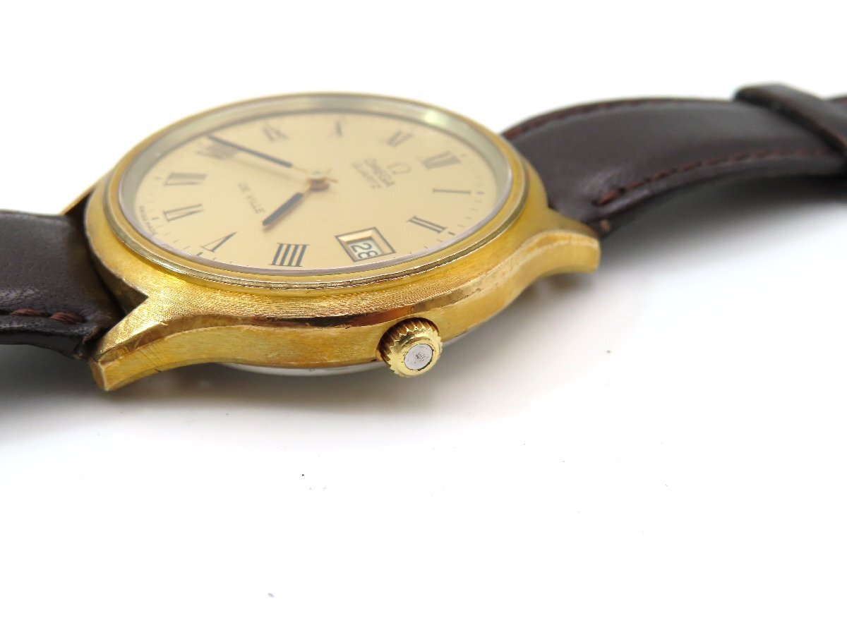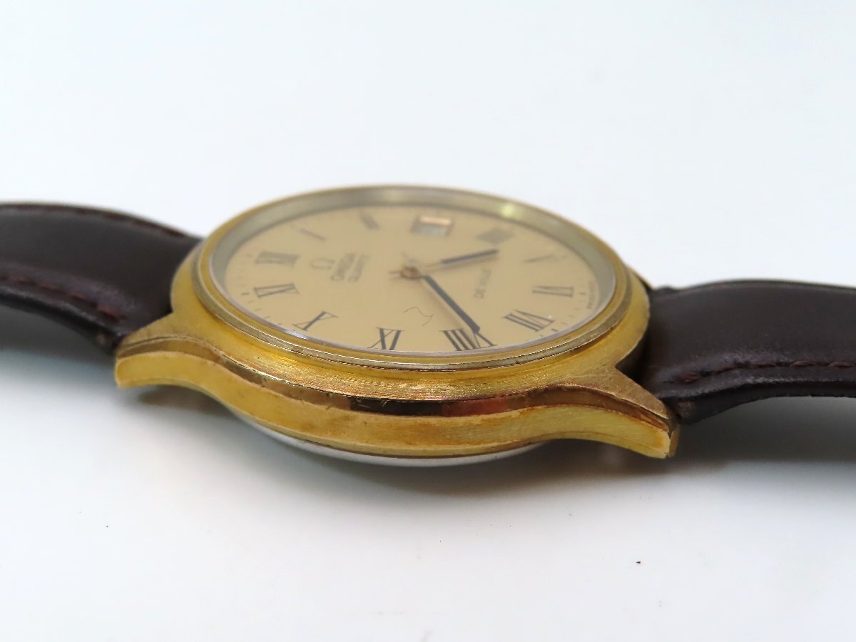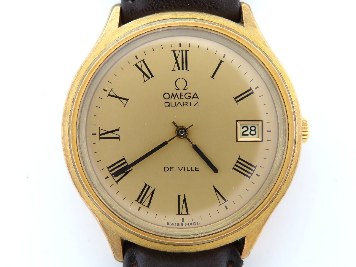 1円 オメガ デビル GP ゴールド文字盤 ボーイズ 不動 QZ ソフトケース ベルト尾錠社外 29979 LP