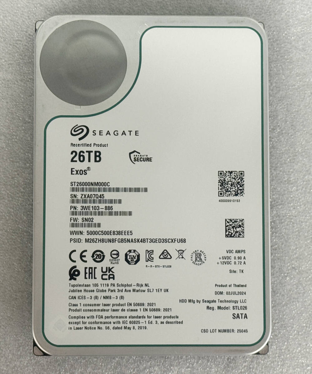 Seagate 内臓HDD 26TB Exos メーカー型番:ST26000NM000C こちらの商品はメーカー整備済品です ・3.5インチ26TB ・キャッシュ512MB ・SATA600 ・7200rpm ・CMR クリスタルディスクインフォにて正常稼働確認済みです。 稼働時間等ご確認の上、入札お願いいたします。 *こちらは26TB大容量になり、市販されている外付けUSBでは認識されないモデルもございます。SATA接続をお勧めします。 USBで認識されないケースは保証対象外とさせていただきます。 画像がすべてになります。 注意事項 ◆商品到着後、1週間以内に動作確認をお願いします。万が一商品をまったく使用できない場合は同等品の交換・返金にて責任を持って迅速に対応致します。 ◆ 写真に写り切らない傷等もございますので、ご了承下さい。あくまで中古品という事を理解した上でのご入札をお願い致します。 ◆ 落札後48時間以内にご連絡を頂けない場合、又3日以内にご入金頂けない場合は、誠に勝手ながら、落札者様を削除させて頂く場合がありますのでご了承ください (自動で非常に悪い評価がつきます)。 ◆ 上記ご理解ご了承の上ご入札お願い致します。 ジャンク品に限りましては、落札後は「ノークレーム」「ノーリターン」でお願い致します。 | ||