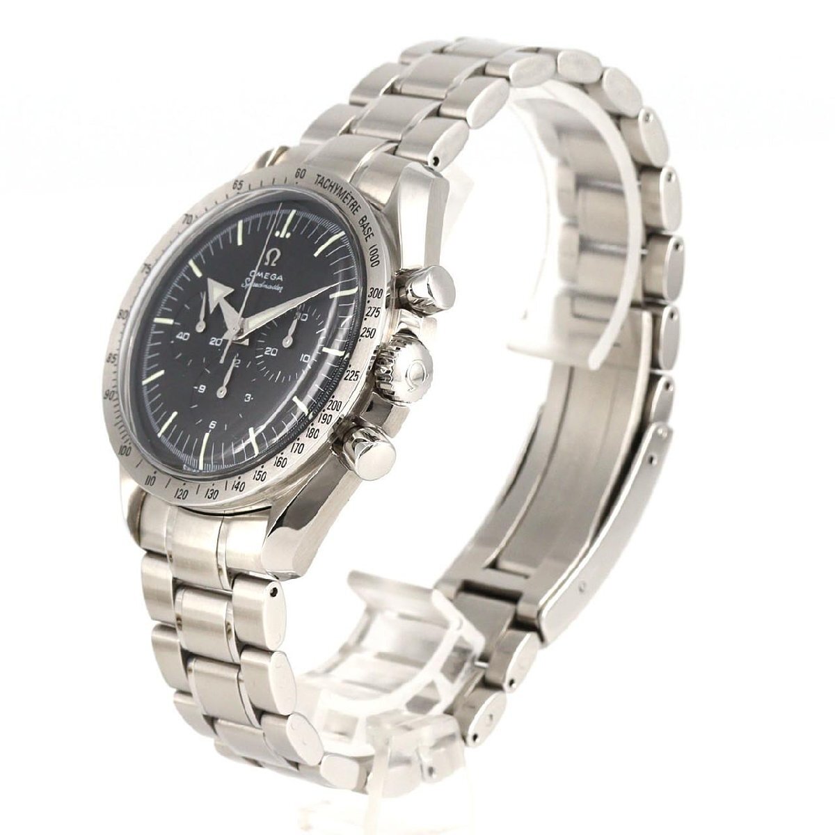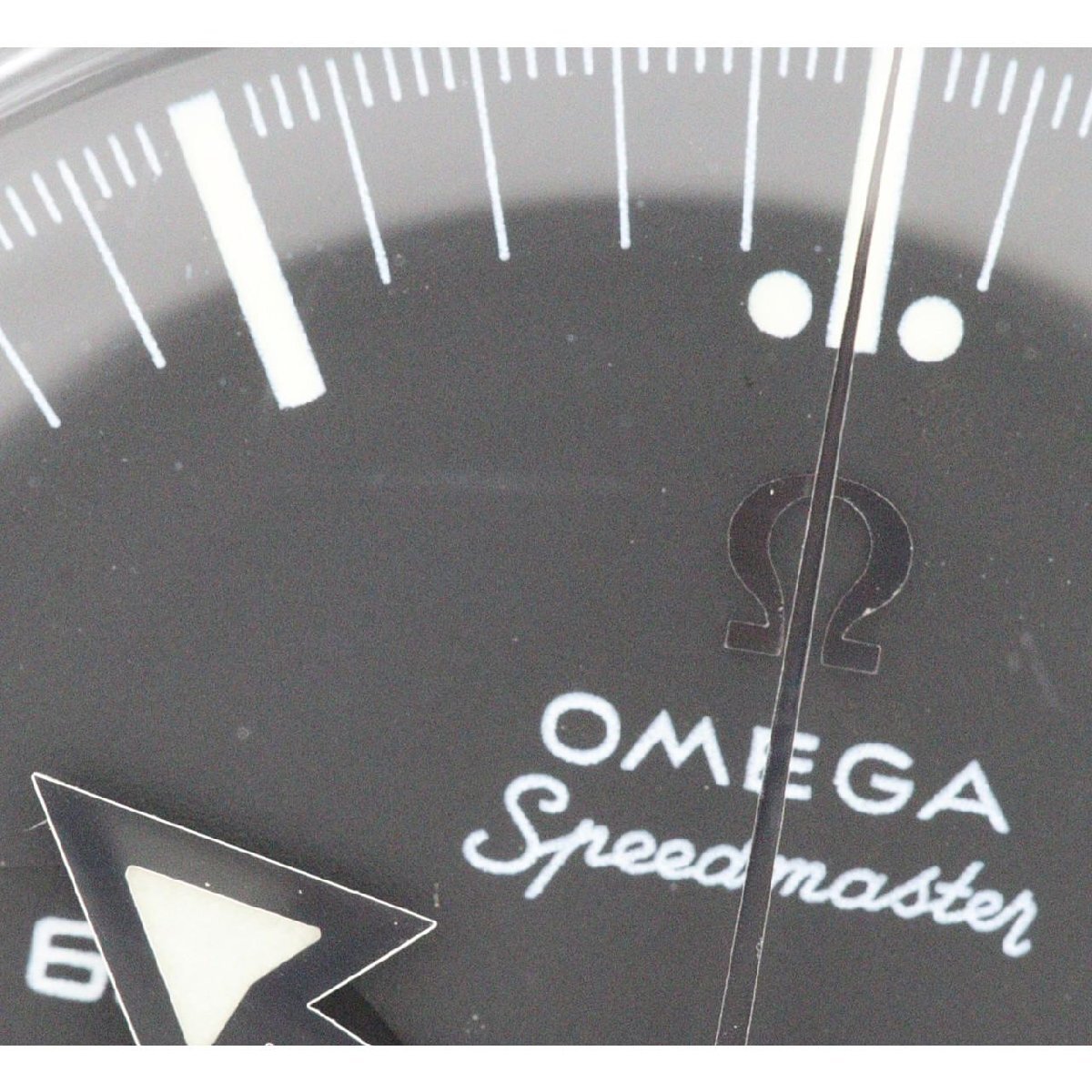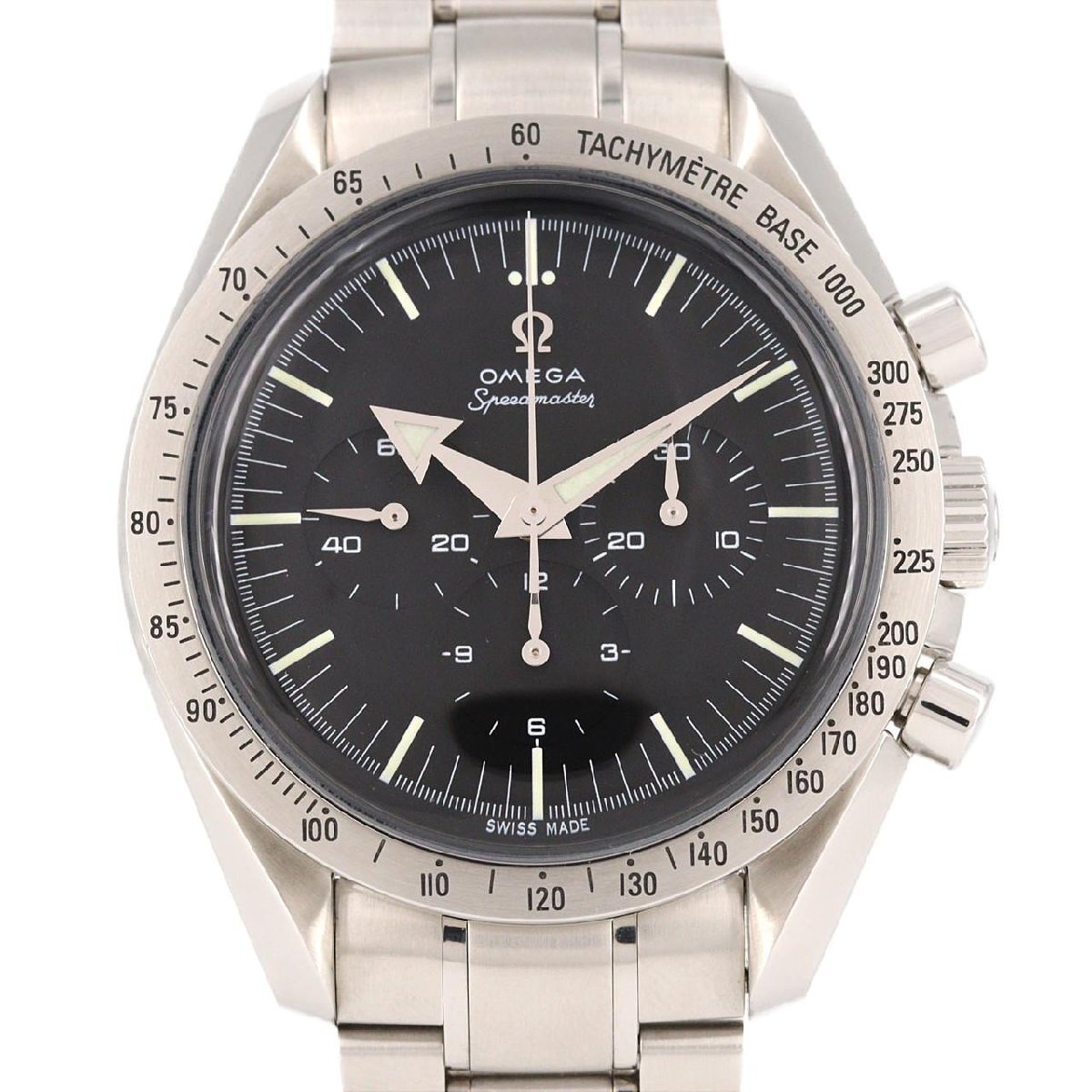 オメガを代表するクロノグラフモデル「スピードマスター」。こちらはスピードマスター初代モデルの復刻モデルです。「アロー針」が特徴的です。