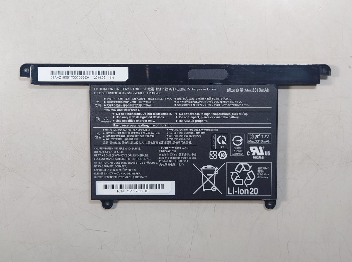 KN5322 【中古品/充電確認済】 富士通(FUJITSU) LIFEBOOK UH75/B3 UH77/B3 UH95/D2 U938 U939等用バッテリー(FPB0343S)