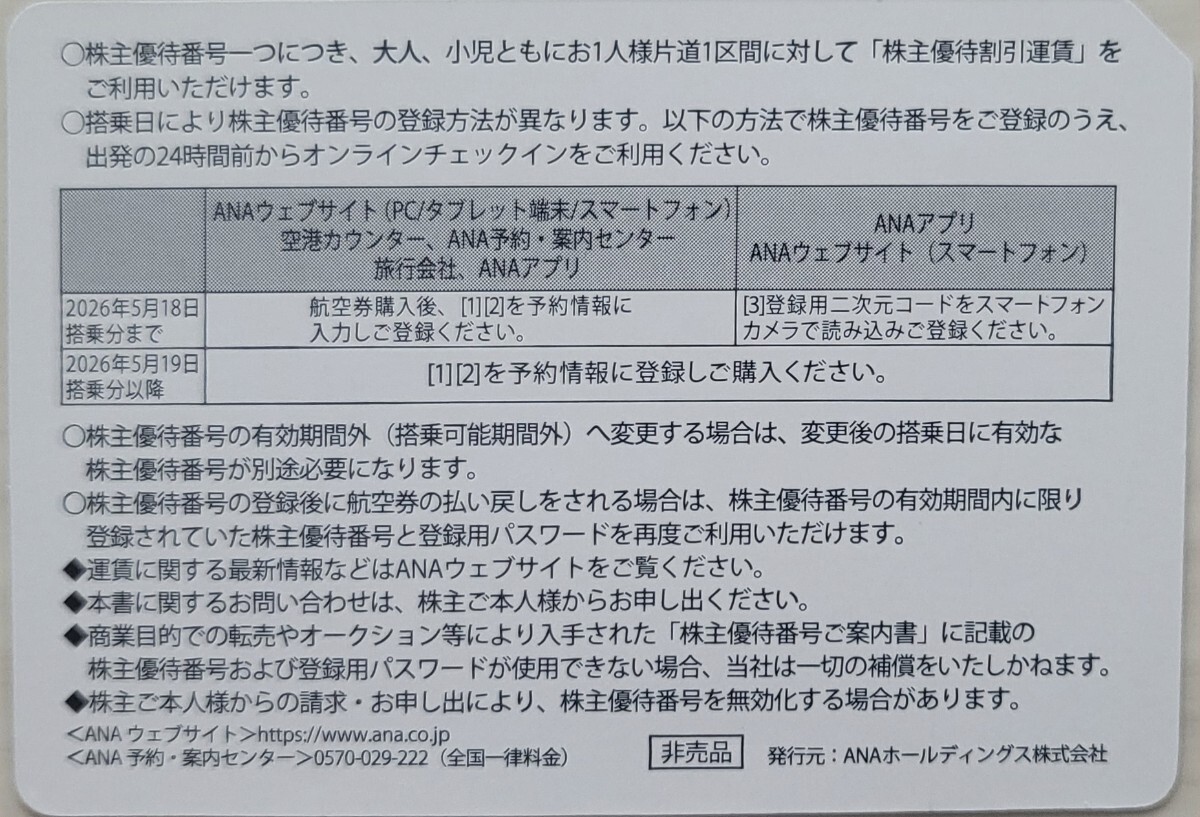 【匿名配送】ANA 全日空 株主優待番号ご案内書 有効期間★2026年11月30日搭乗分まで