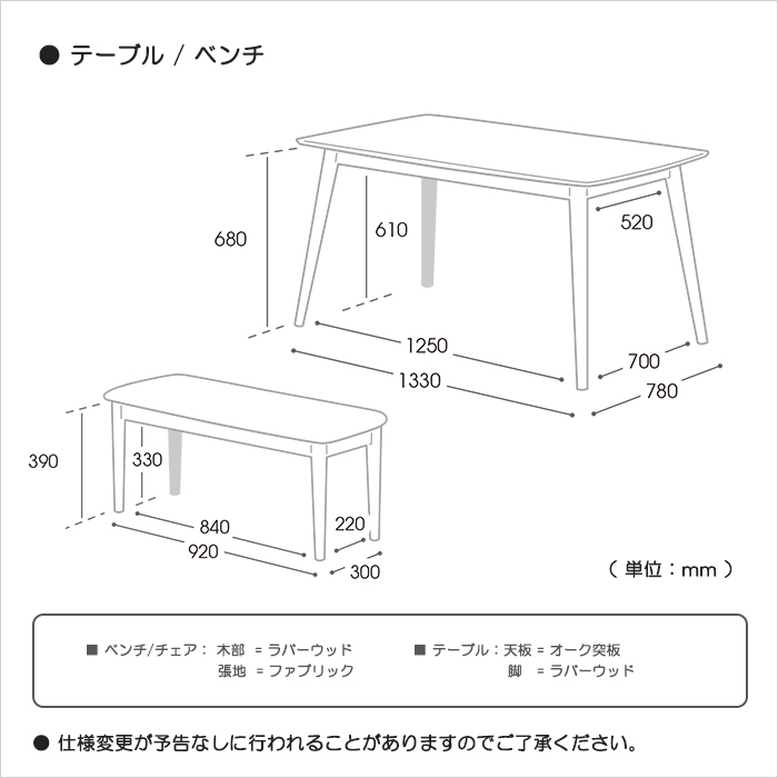 チェア、ベンチの他色組み合わせも可能(イスは2脚単位)備考欄(要望欄)へ記載してください。
