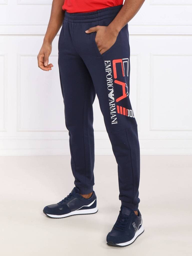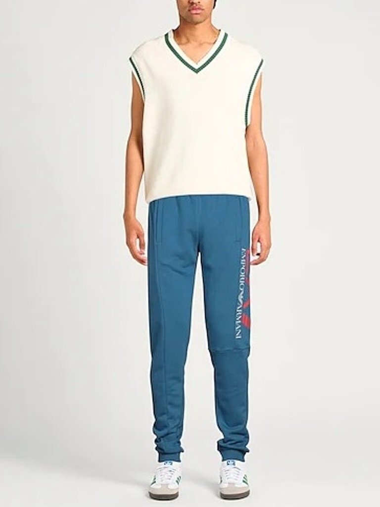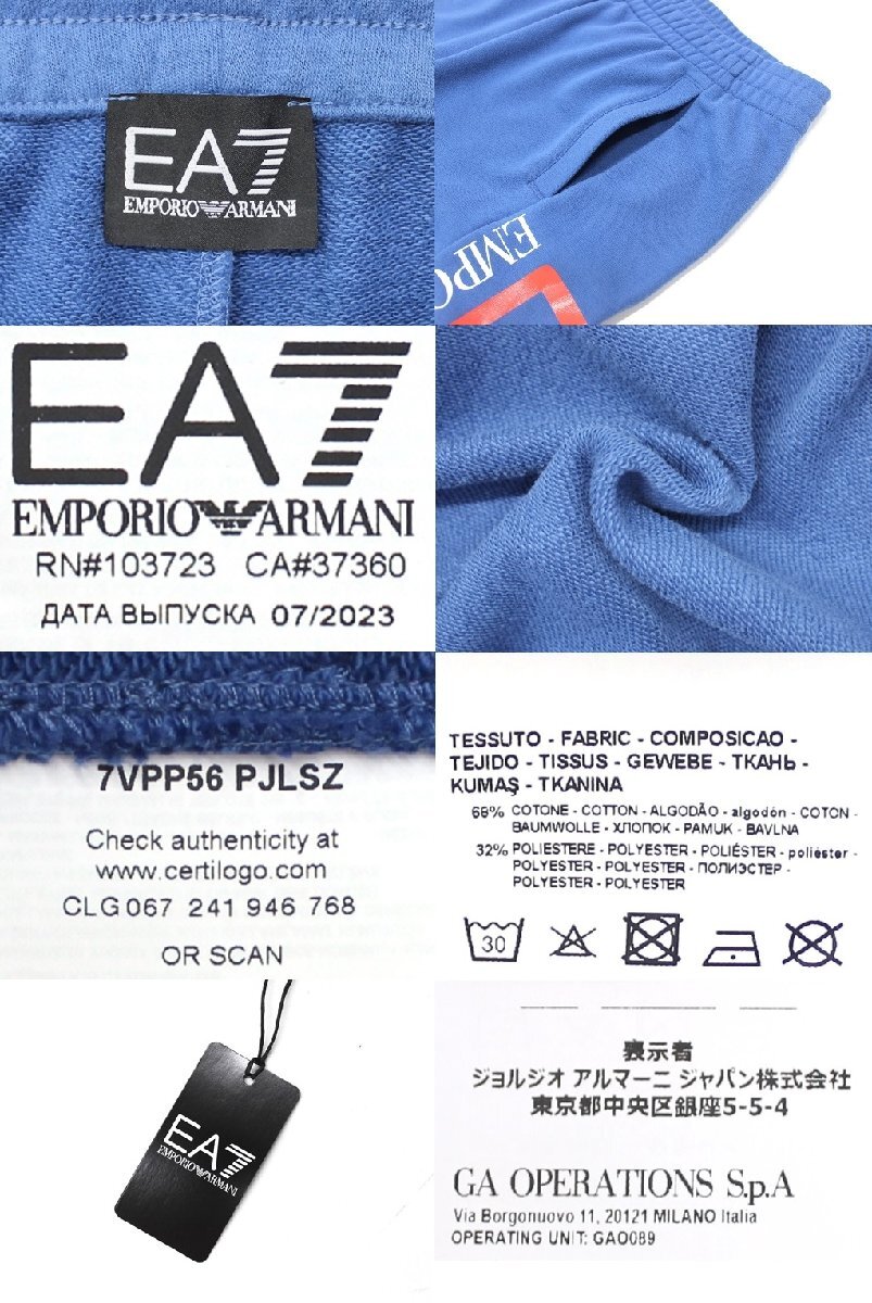 5万新品◆L◆EMPORIO ARMANI アルマーニEA7◆レギュラーフィット コットン混紡ロングスウェットパンツ ブルー青