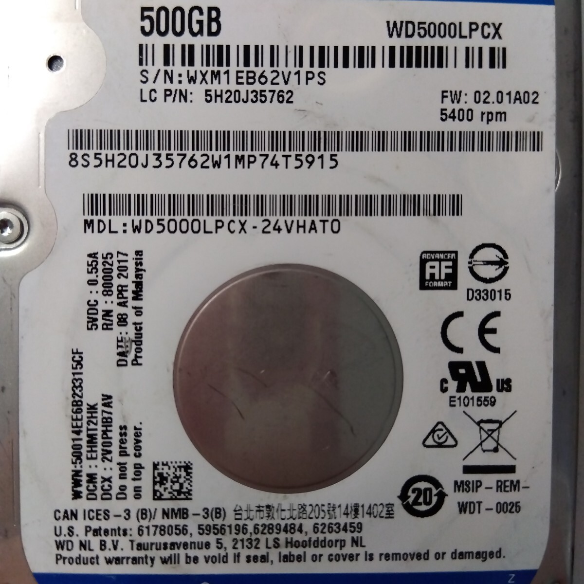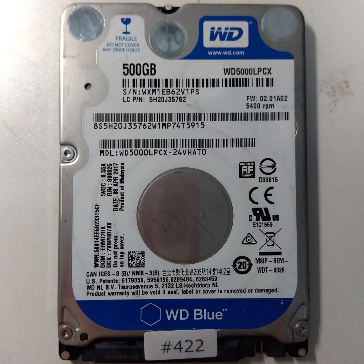HDD 500GB 2.5インチハードディスク / Crystal DiskInfo 正常 / #422 / Western Digital / WDC WD5000LPCX-24VHAT0