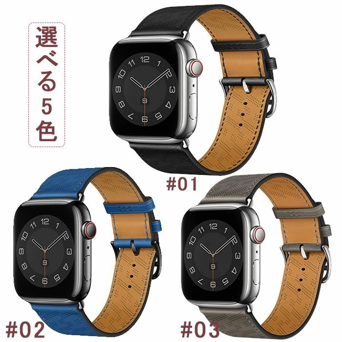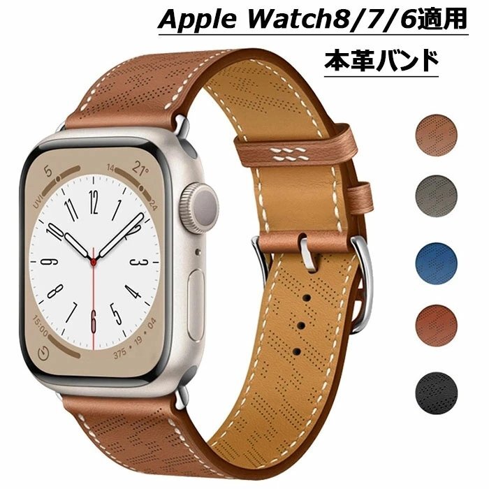 Applewatch9se 対応 iwatch8/7/6 対応 バンド 腕時計 替えベルド 本革 交換バンド applewatchベルト ファーウェー フィット ☆5色選択/1点