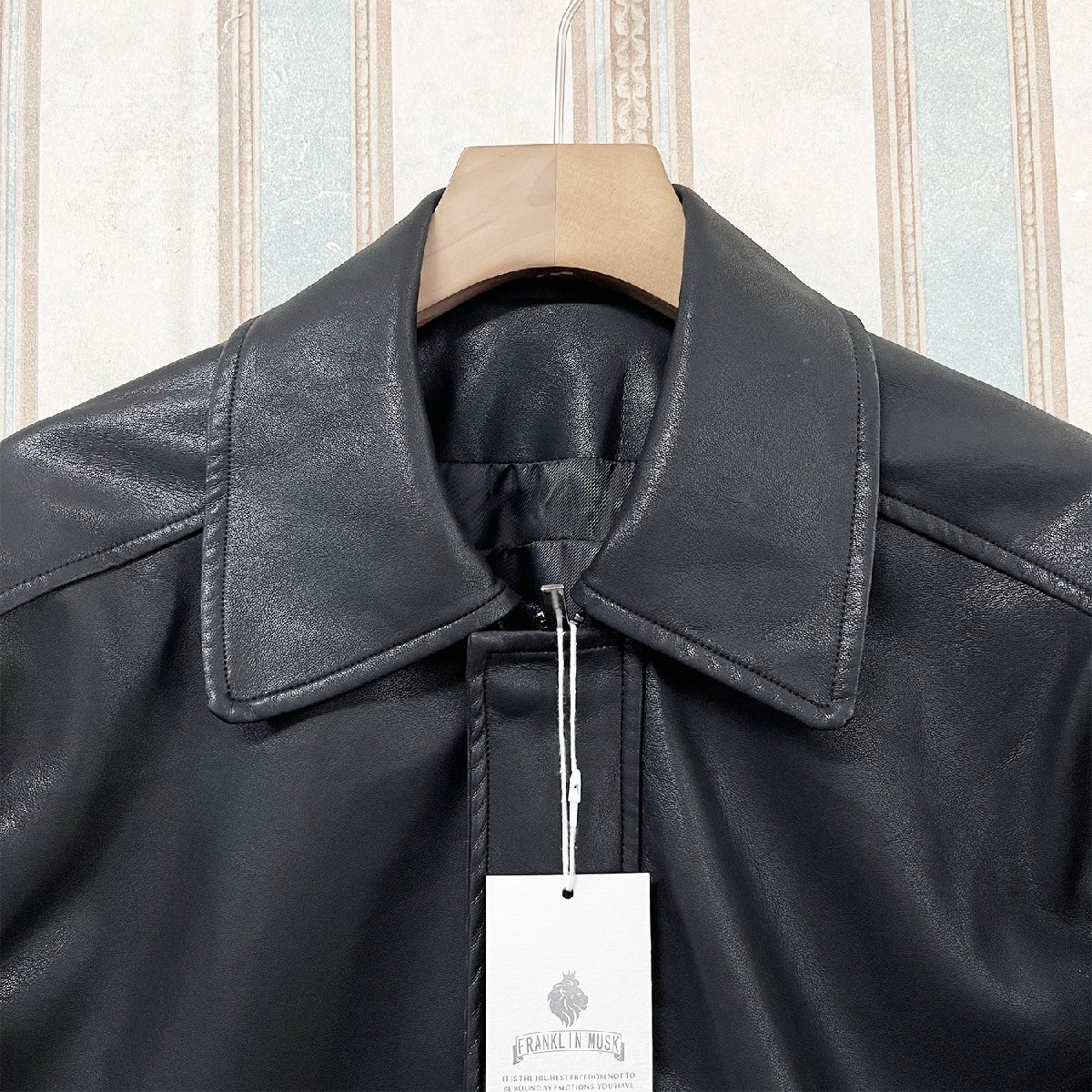 最高級 定価13万 FRANKLIN MUSK・アメリカ・ニューヨーク発 レザージャケット 羊革 本革 柔らか 光沢 無地 ライダース 革ジャン バイク サイズ3