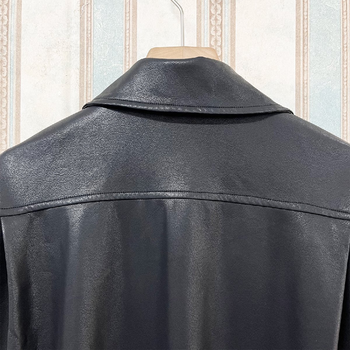 上質な羊革を惜しみなく使用、革の柔らかさを活かして、手触りの良さを実感していただきたい逸品です。立体裁断により動きやすさ、快適性も追及して、適度な光沢感を放ち、高級感が溢れています。風合いが非常に豊かで着込むごとに体に馴染んでいき、見た目も味わい深くなるのが実感いただけます。