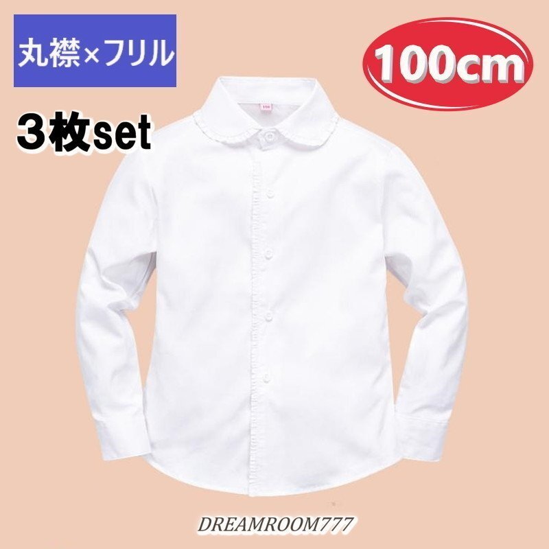 お得な3枚set★綿100% 丸襟×フリル ブラウス【100cm】ワイシャツ 白シャツ 学生服 フォーマル 冠婚葬祭 制服