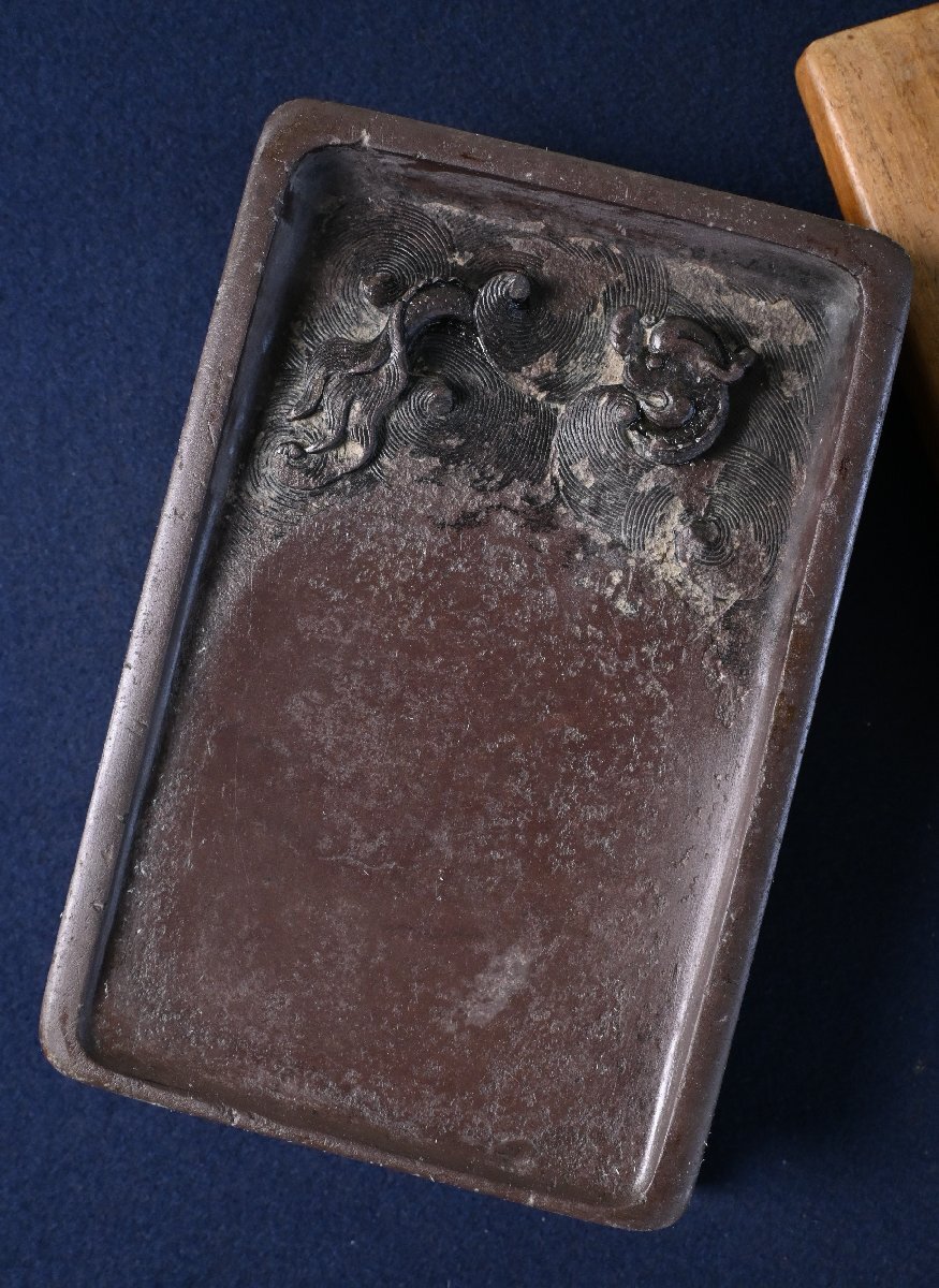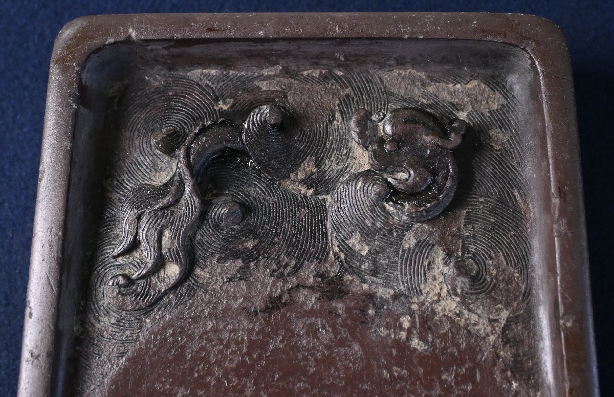 中国の古い硯 『(清)古端渓 海龍 長方硯』