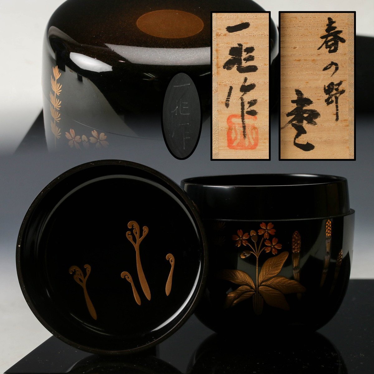 【佳香】一后一兆 春の野棗 共箱 共布 栞 茶道具 本物保証