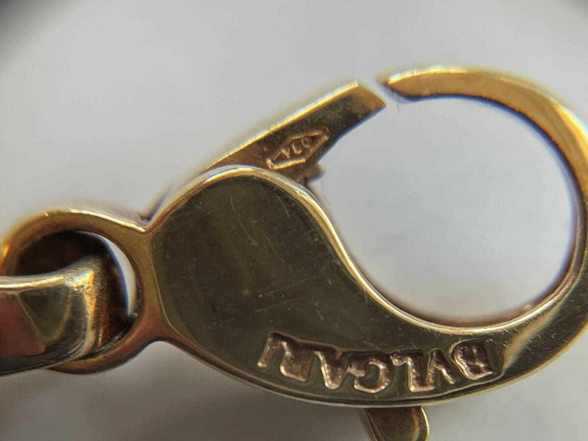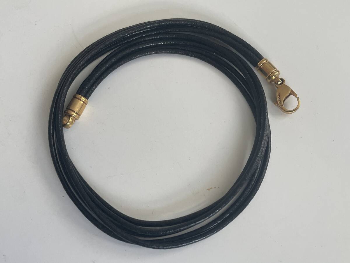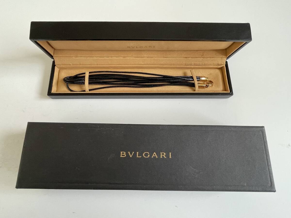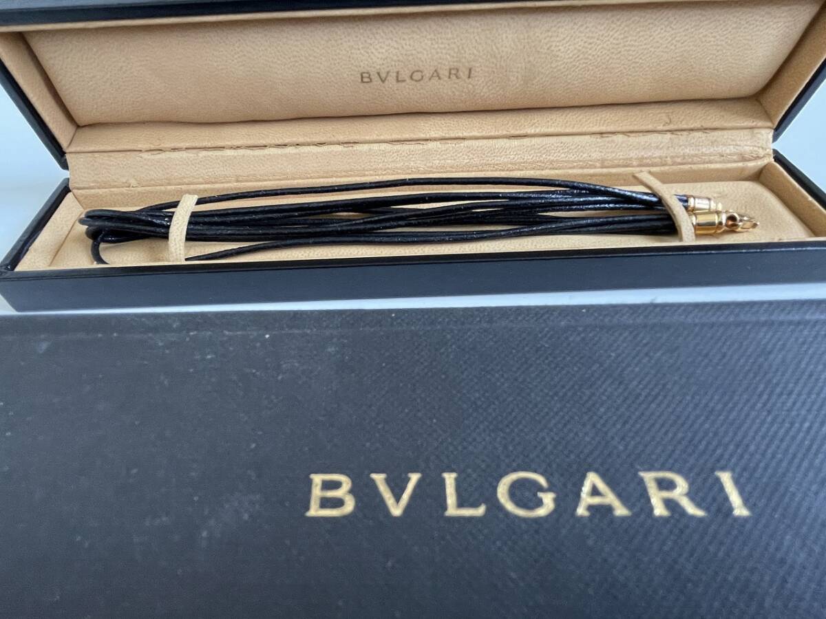 状態:金具に小キズあり/レザー紐に使用によるわずかな毛羽立ちあり。刻印(750BVLGARI 刻印)あり。