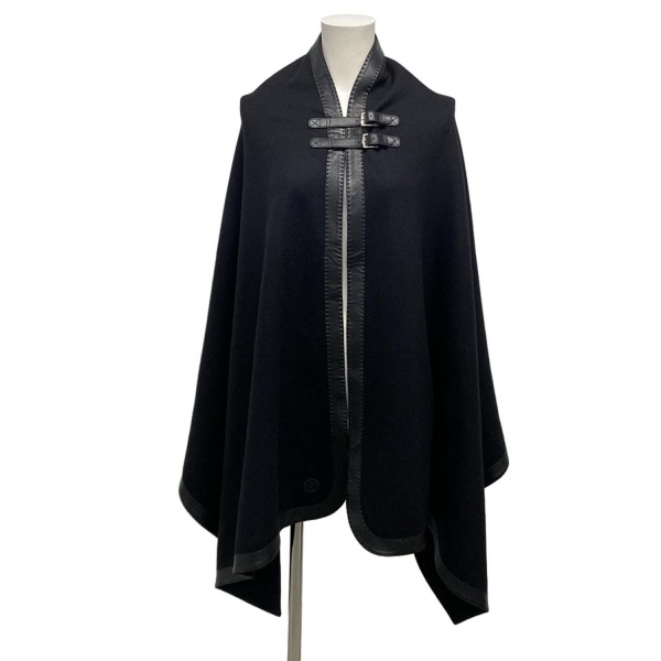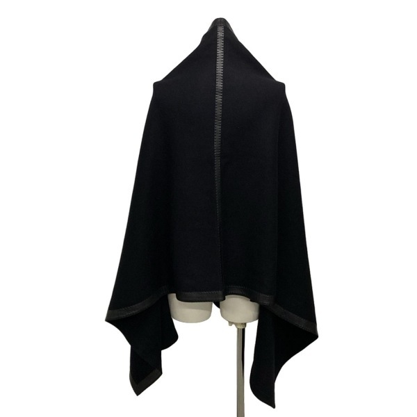 エルメス HERMES ポンチョ - カシミヤ 黒 レディース カシミヤ混/ラムスキン/秋/冬/ 美品 ジャケット