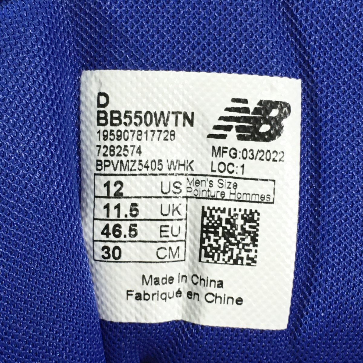 30cm NEW BALANCE 550 BB550WTN ニューバランス 550 ホワイト ブルー H159599 2000002159599 TYO