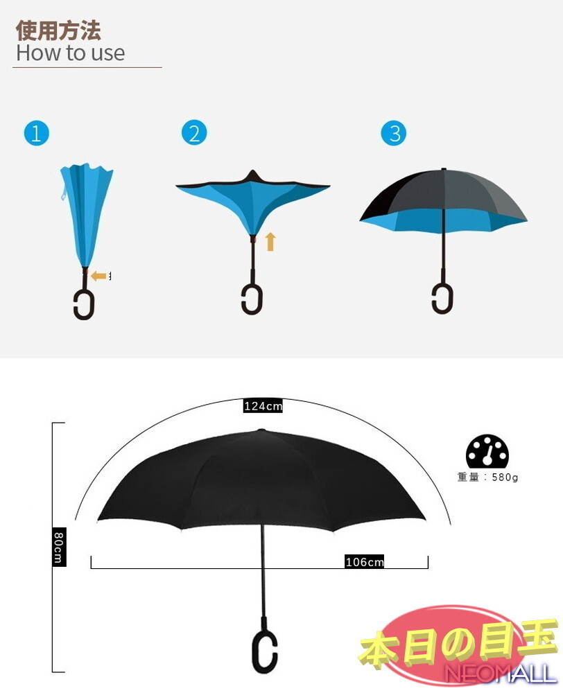 1円~ ☆ 逆折り式傘 【630-B】日傘 雨傘 自動広ける 手離れC型手元 自立可能 二重 ビジネス用 車用 男女晴雨兼用 通勤 通学 柄 模様