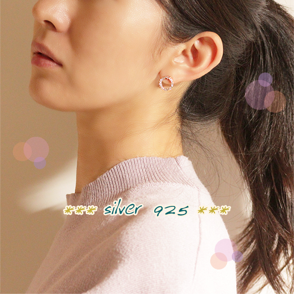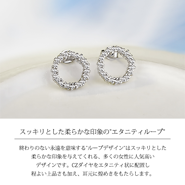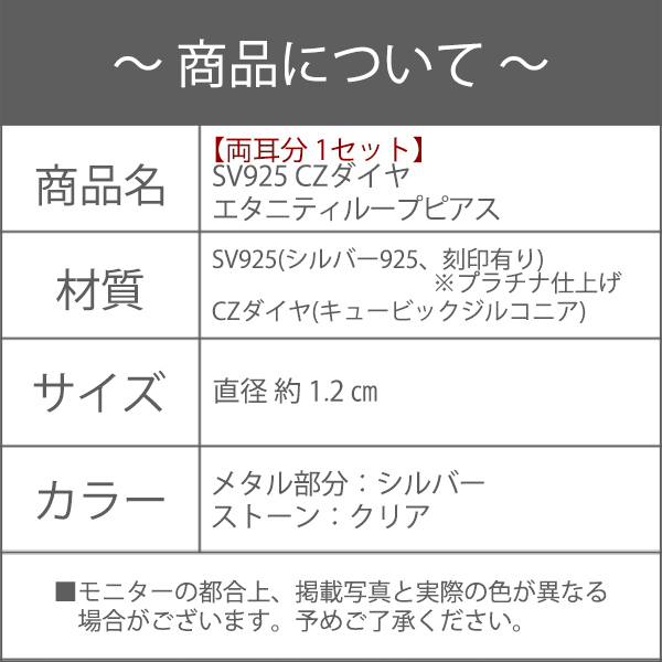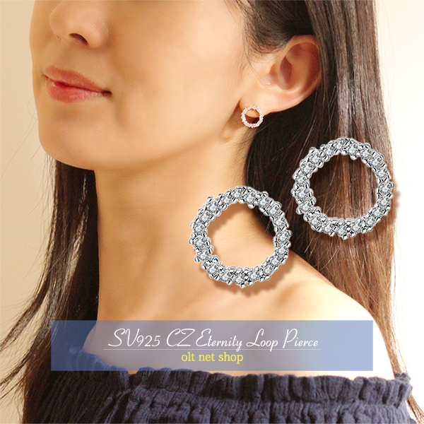 新品/ピアス/ループ/サークル/円/丸/ダイヤ/シルバー/レディース/両耳/シンプル/CZ/上品/女性/プラチナ仕上げ/銀/SV925 刻印