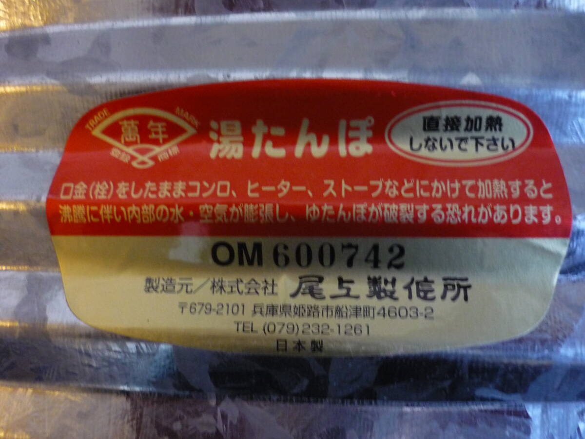 尾上製作所 湯たんぽ 金属製 縦30センチ 幅22センチ 厚み8センチ