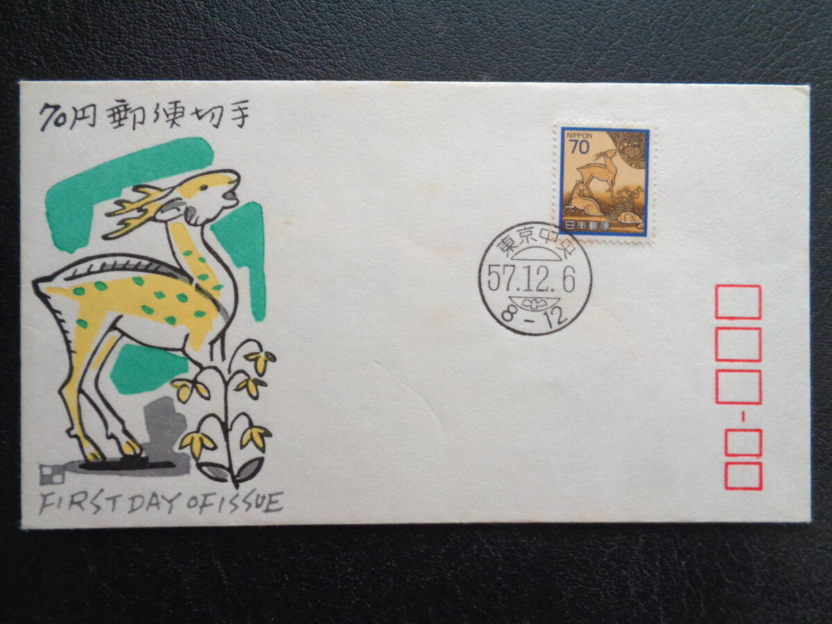 初日カバー    1982年     普通切手    【花・貝・文化財】    春日山蒔絵硯箱(70円)