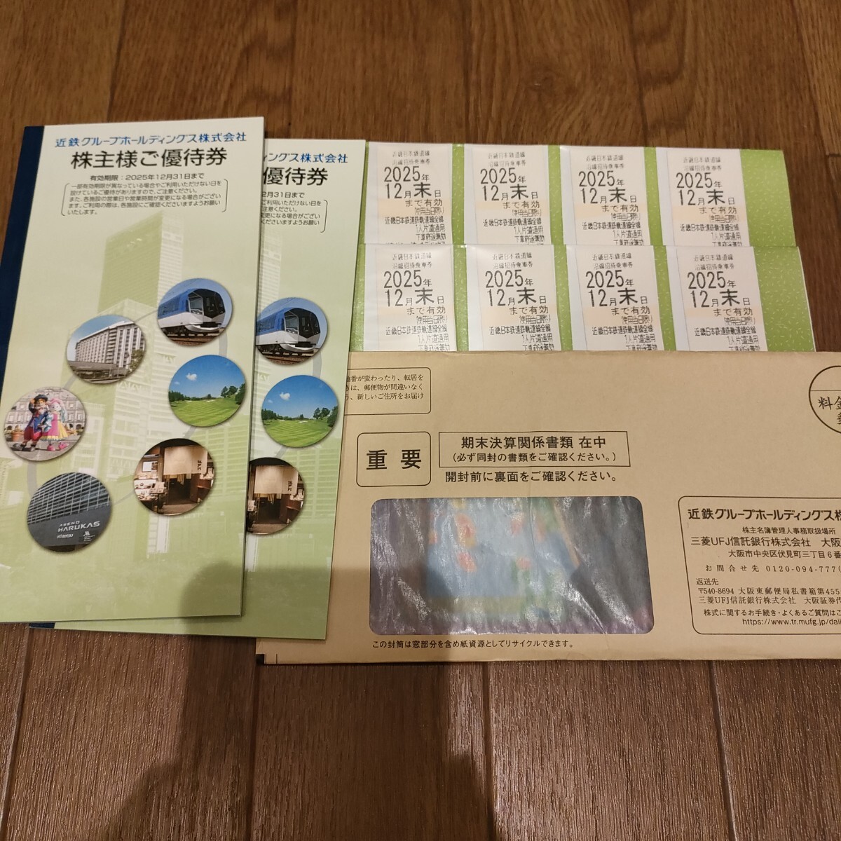 近鉄の沿線招待乗車券8枚と株主優待券の冊子です。